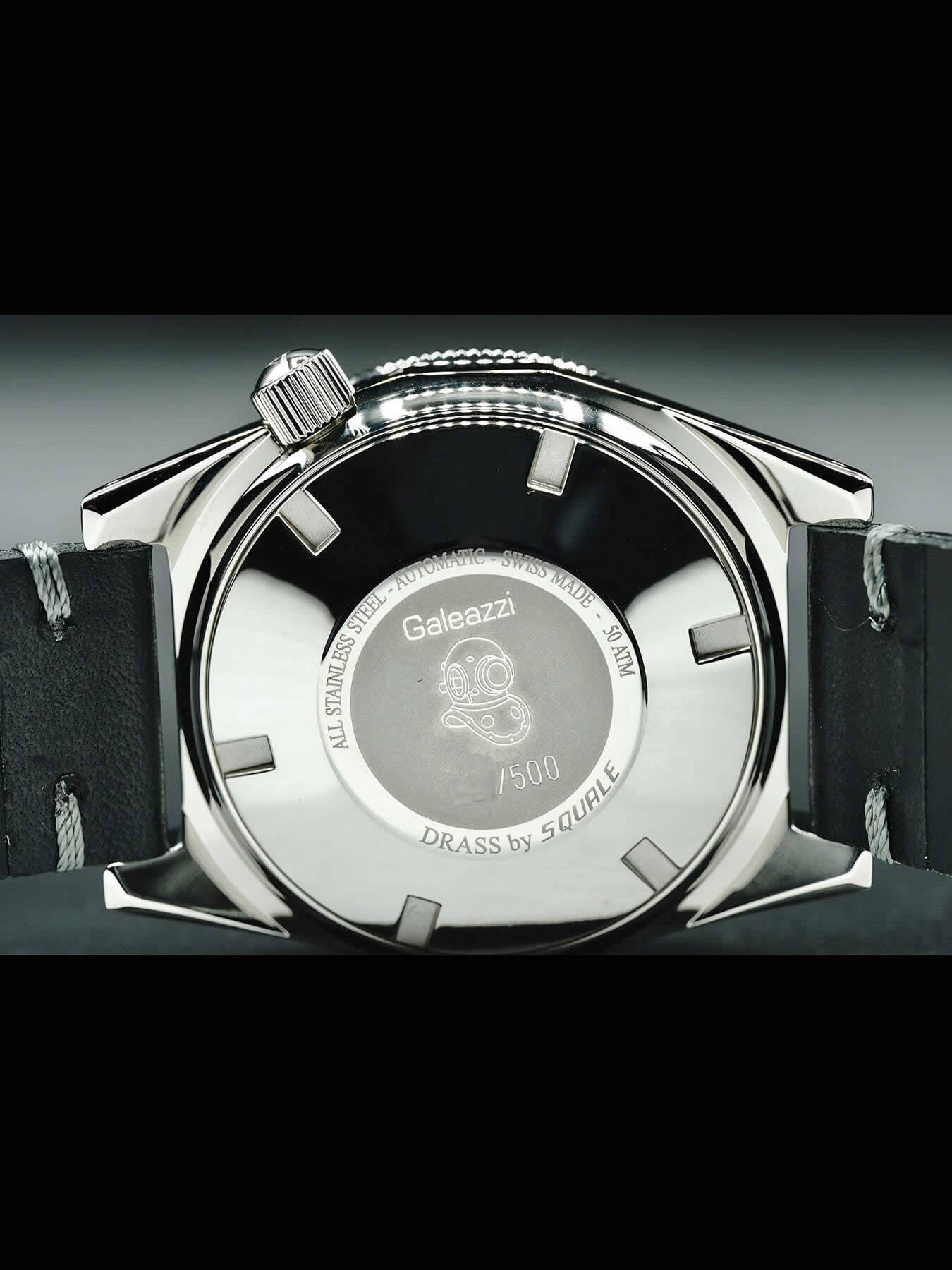 This Squale X Drass Galeazzi VONDSSGZZ is in AS NEW condition. This watch includes its original box and instruction manual. Extra black leather strap. Limited Edition of 500 pieces.
