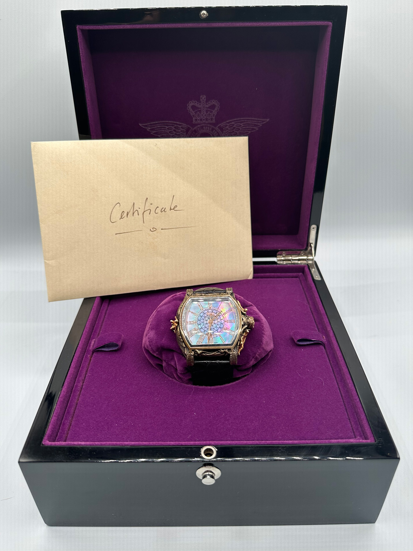 This Strom Agonium Archangeli Red Gold Dark C12-01.RG.90 is in EXCELLENT condition. It has box, instructions booklet and warranty card. This watch has been fully authenticated and certified by Exquisite Timepieces.