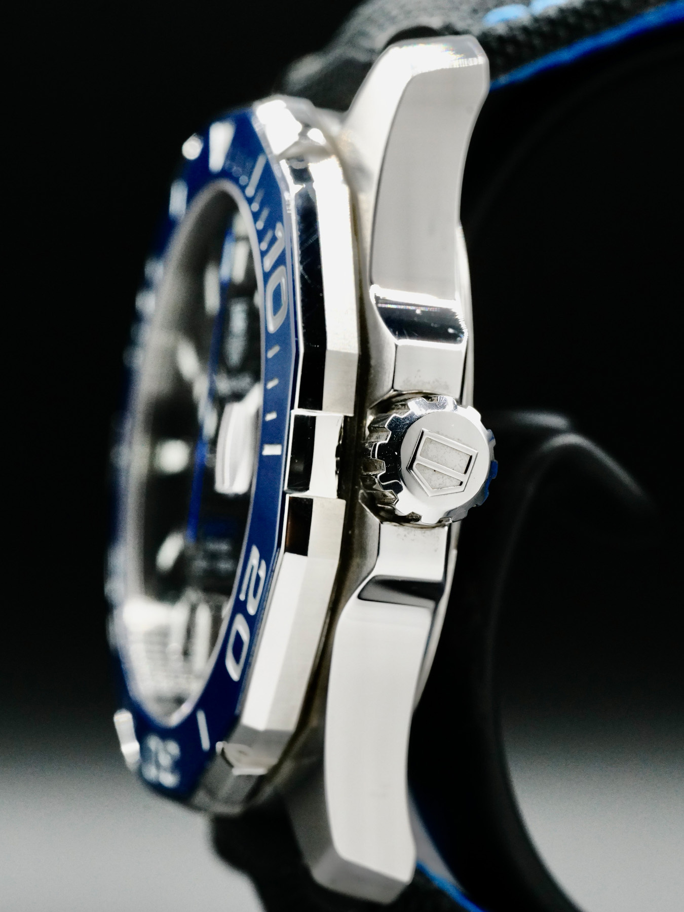 This Tag Heuer Aqua Racer WAY211B is in EXCELLENT condition. It has box and papers. Limited international guarantee dated for April 2016.