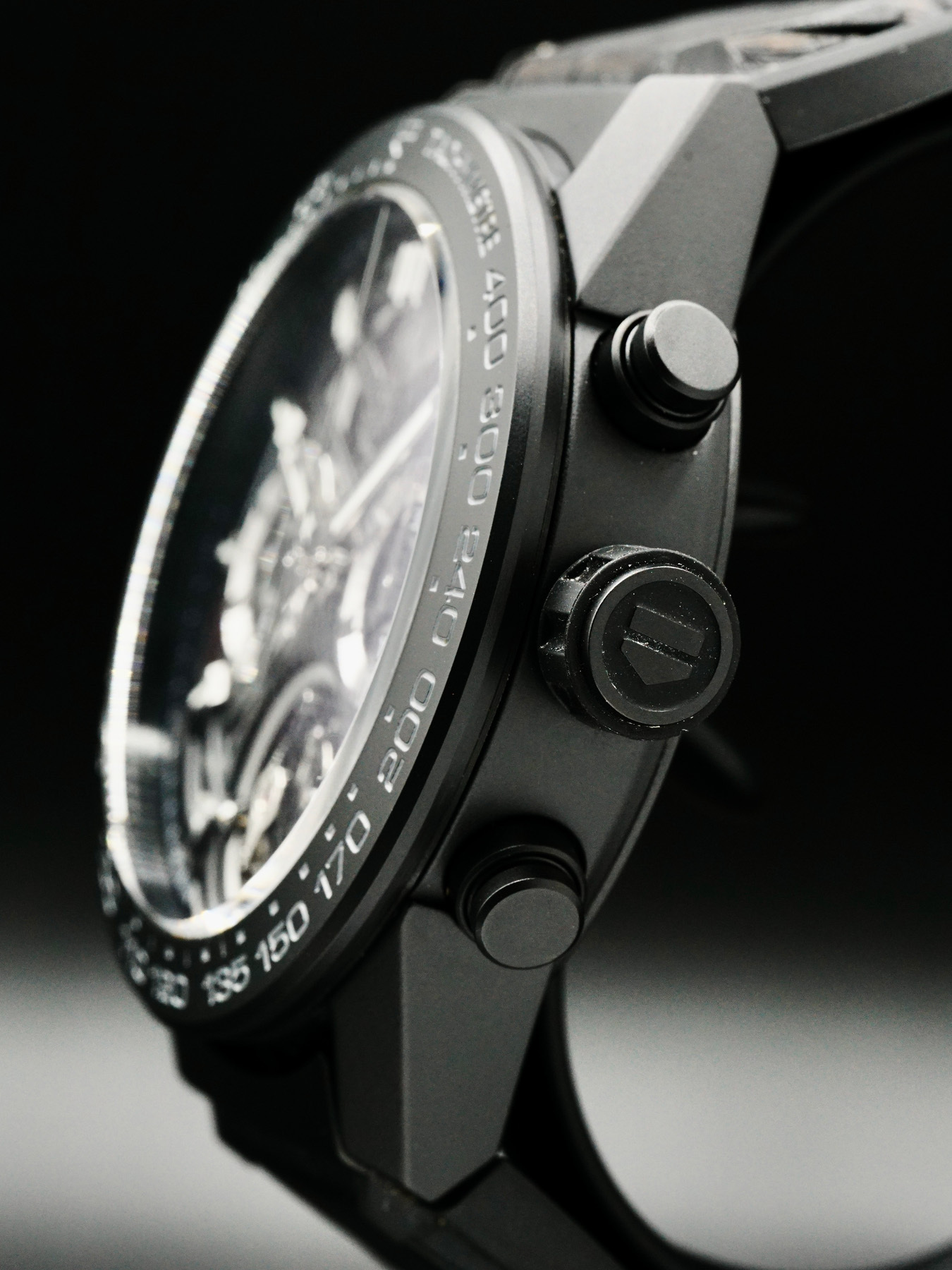 This Tag Heuer Black Phantom Limited Edition Tourbillon Ceramic CAR5A90.FC6415 is in EXCELLENT condition. It has boxes and papers. International warranty dated for May 2022.