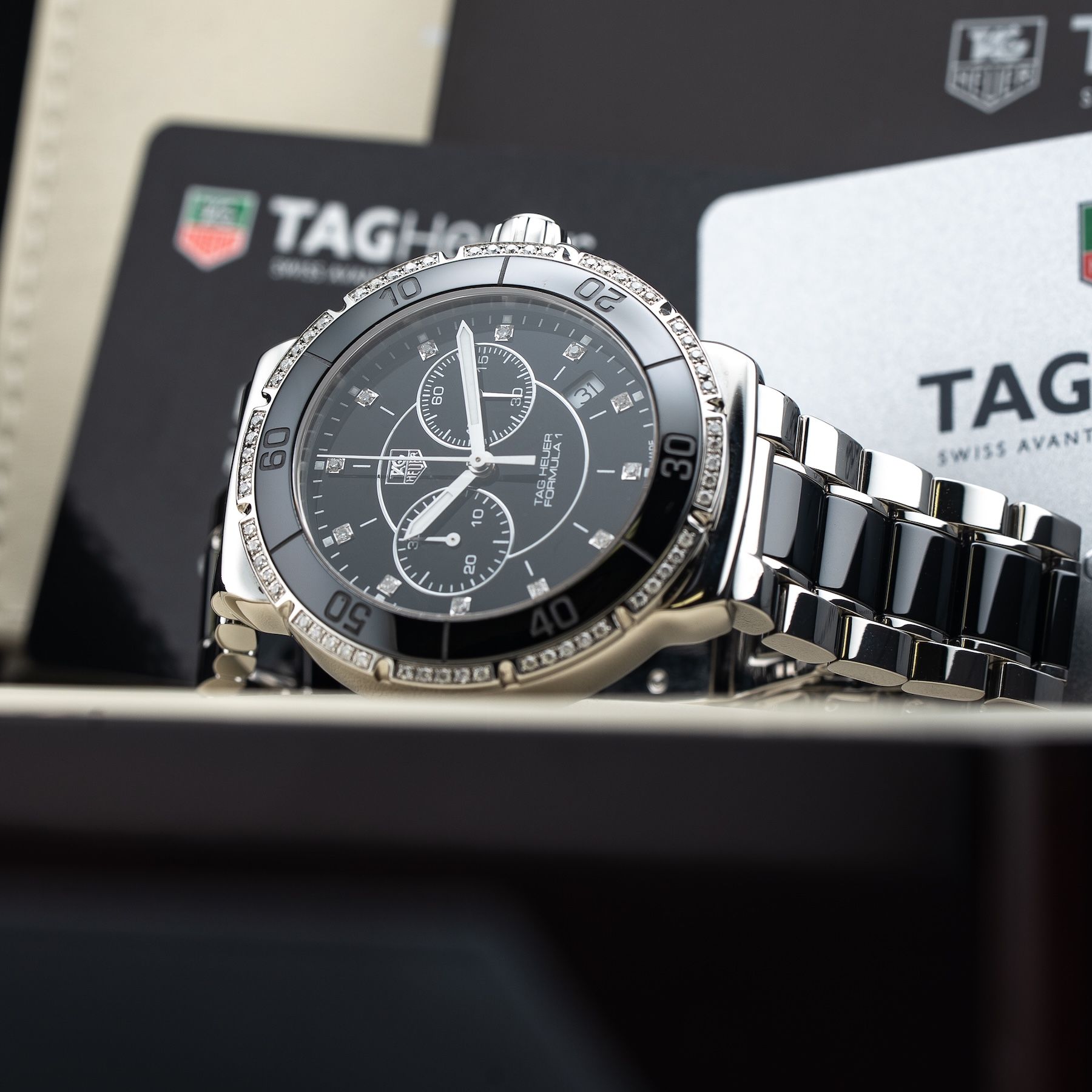 This Tag Heuer CAH1212.BA0862 Formula 1 is in GREAT condition. This watch includes its Original Box, Original Papers and Warranty Card Dated 5/8/2013. This watch has been fully authenticated and certified by Exquisite Timepieces.Please note, the photos shown are of the actual watch you will receive.