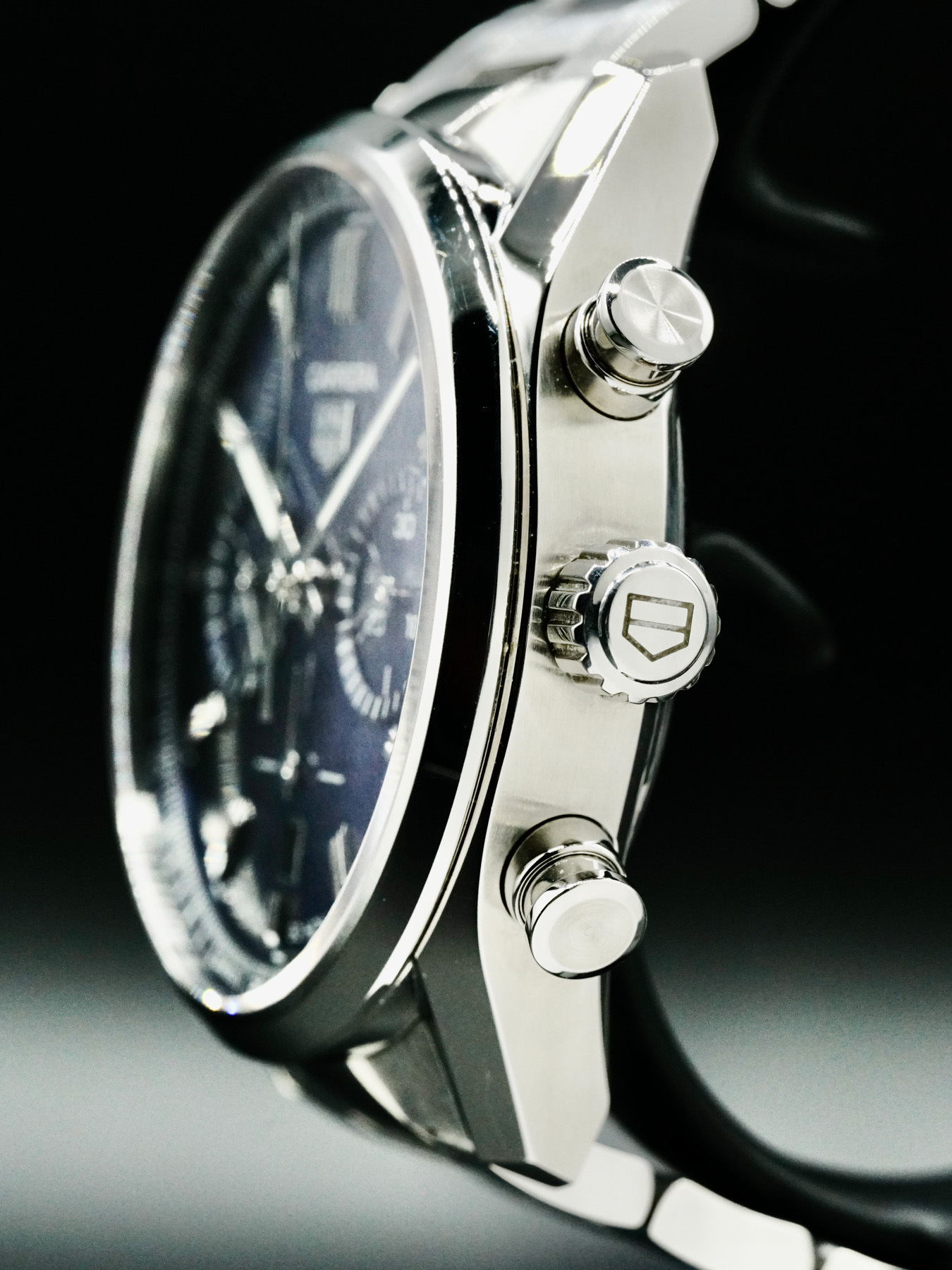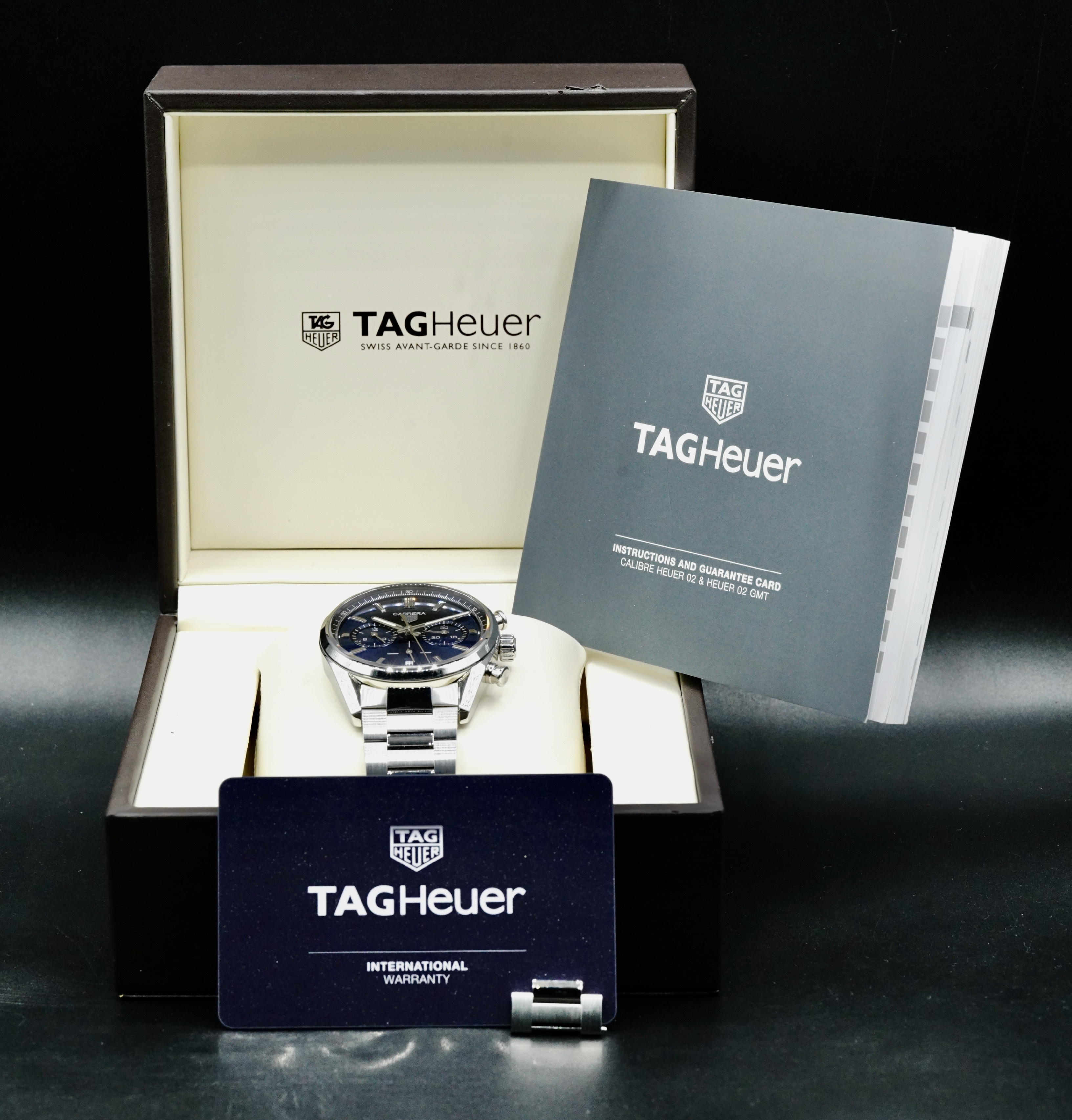 This TAG Heuer Carrera CBN2011.BA0642 is in GREAT condition. This watch includes its original box, instruction manual, and international warranty card. No date on warranty card. Extra stainless steel bracelet link.