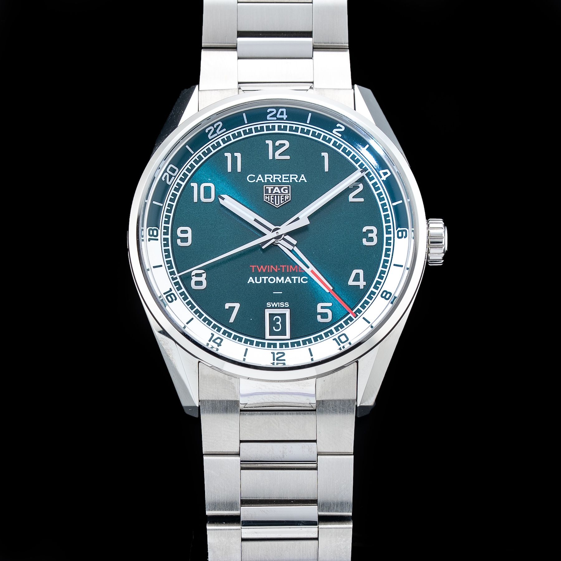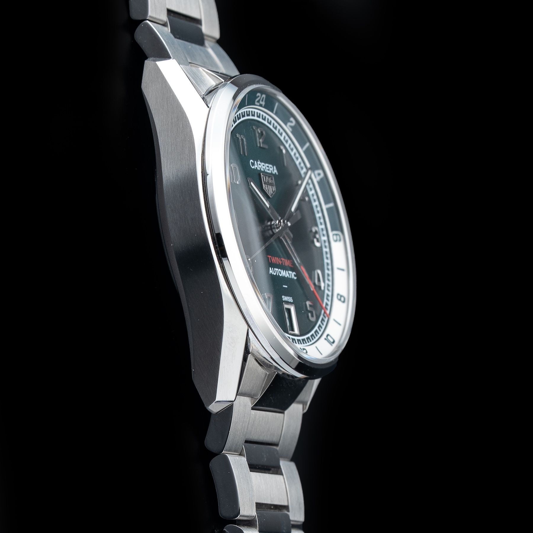 This TAG Heuer Carrera Date Twin-Time WDAZ114.BA0043 is in GREAT condition. This watch has been fully authenticated and certified by Exquisite Timepieces. Please note, the photos shown are of the actual watch you will receive.