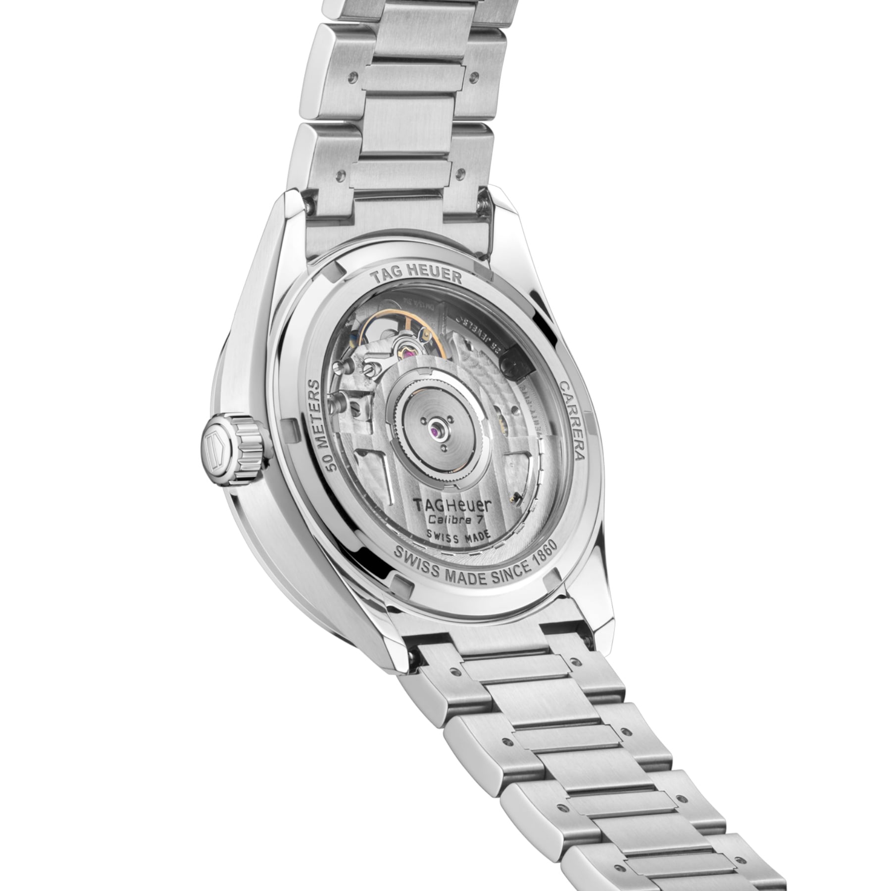 The powdery pink sunray-brushed dial creates a feminine and sophisticated look, accented by a gradient track circling the dial. Diamond-set indexes add a touch of luxury, embodying the spirit of the TAG Heuer Carrera.
