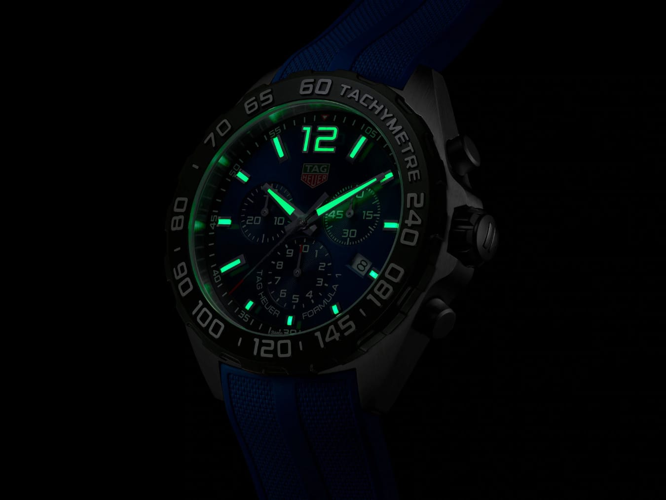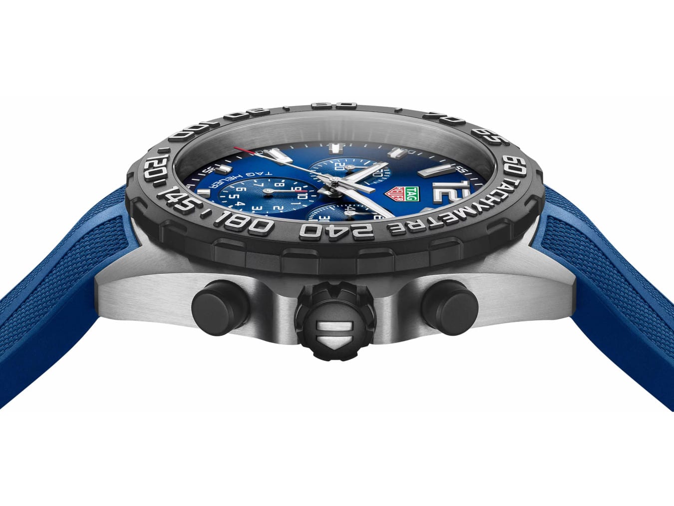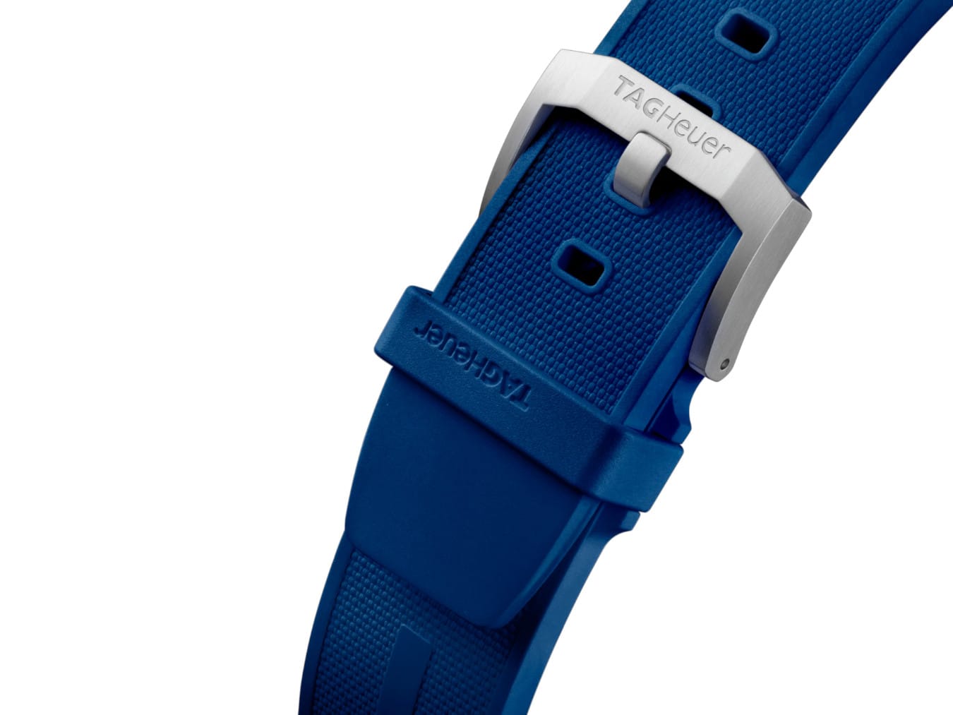 Experience the epitome of sporty elegance with this TAG Heuer Formula 1 timepiece. Showcasing a vibrant blue dial and equipped with a versatile blue rubber strap, this 43 mm watch lends a modern edge to a racing legend.
