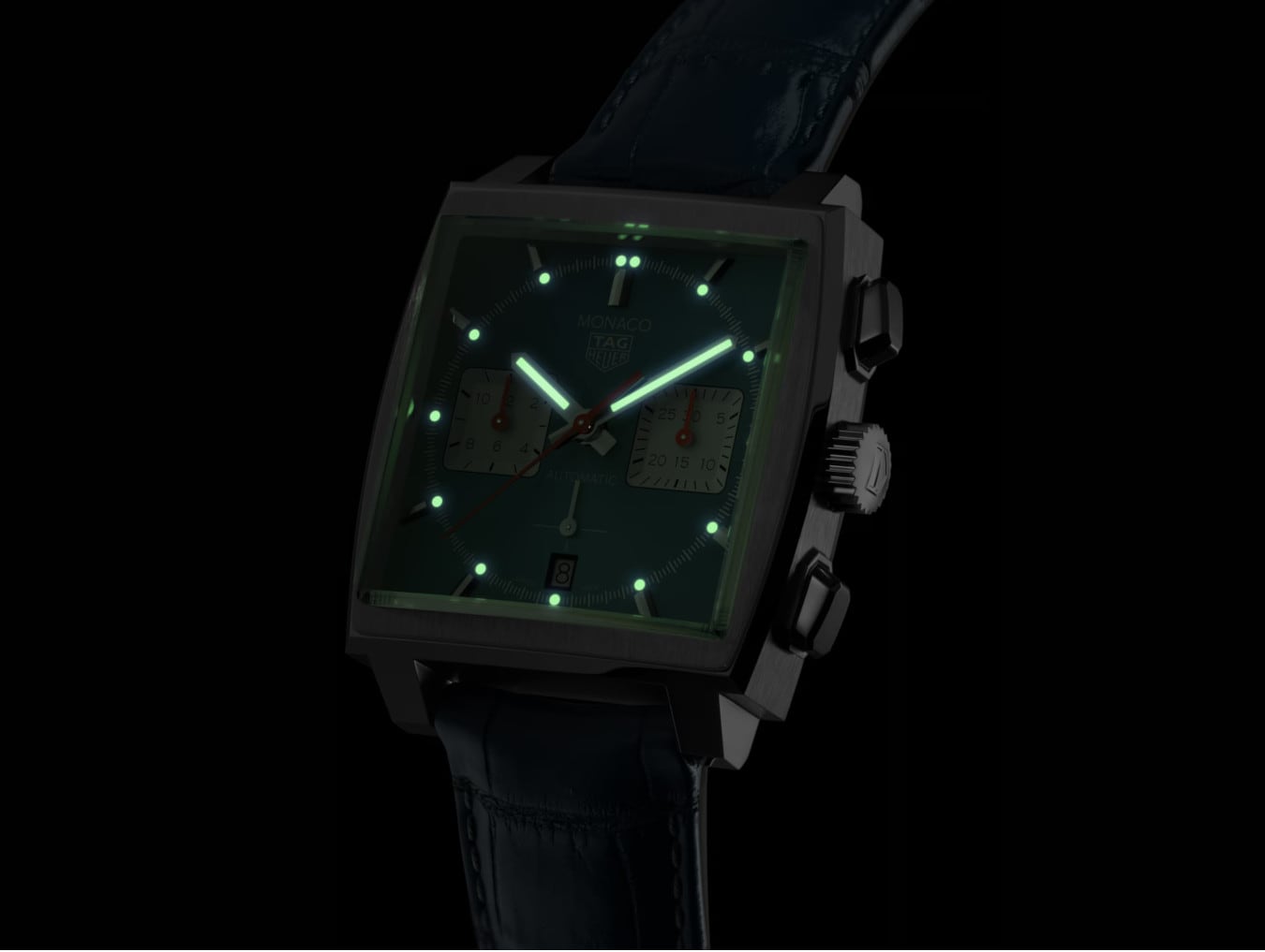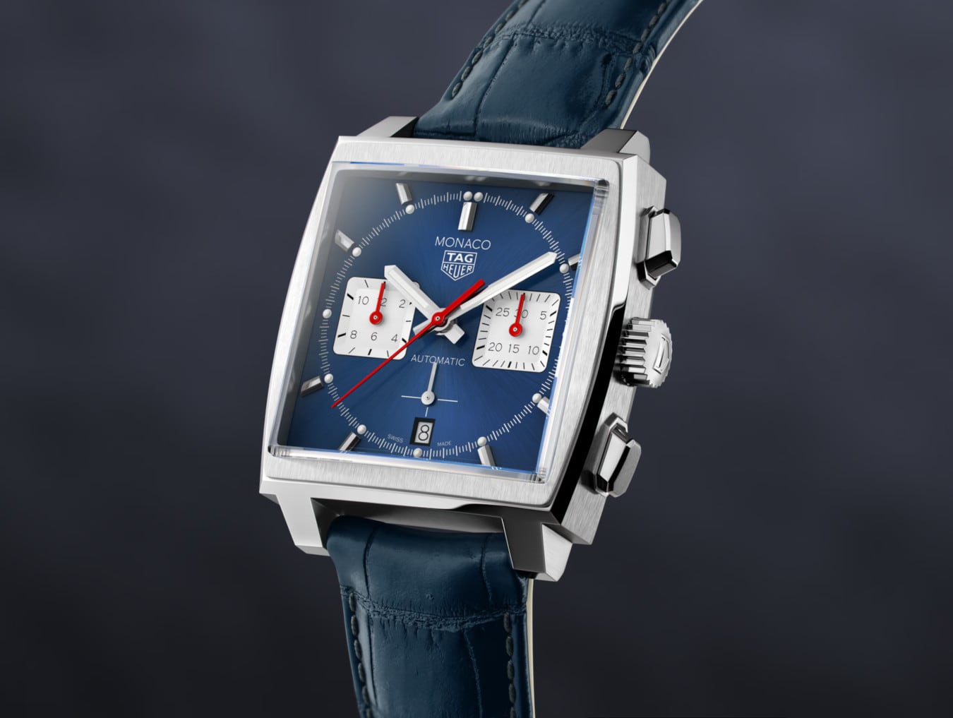 The first Monaco outfitted with an in-house Heuer 02 movement. Vintage, timeless design faithful to the blue, square-faced original Monaco, and packed with 80 hours power reserve.