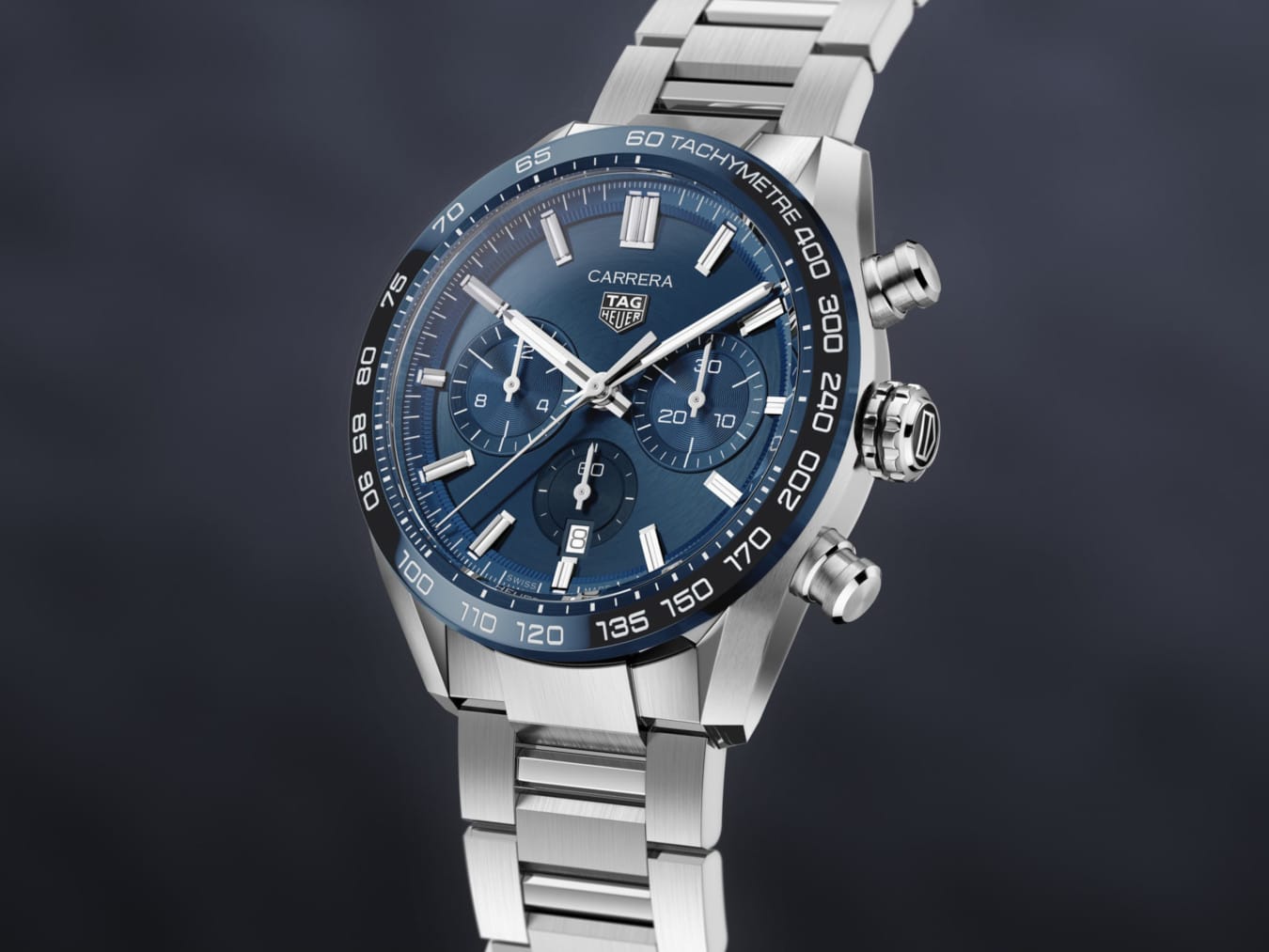Steel Fine-Brushed/Polished with Ceramic Blue Tachymeter Fixed Bezel