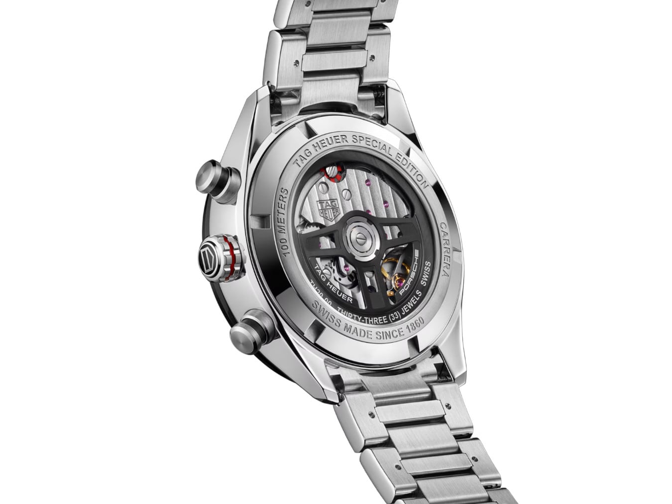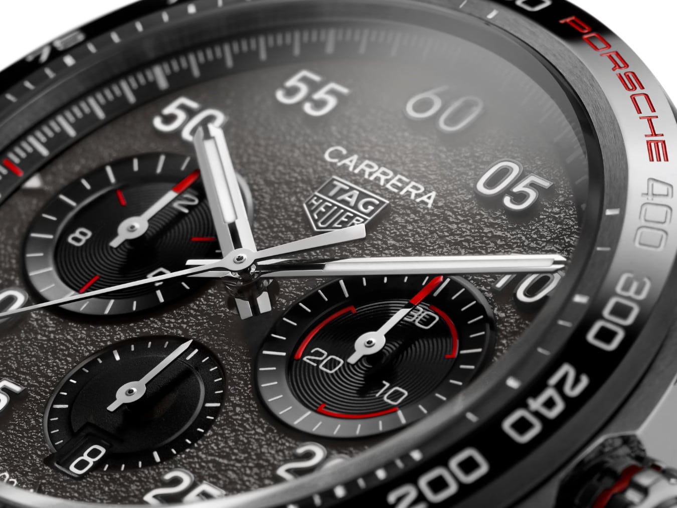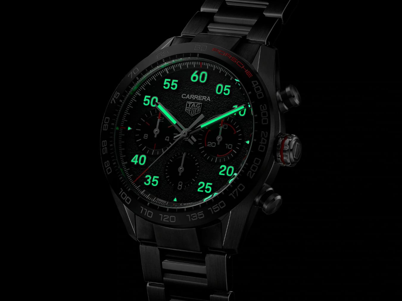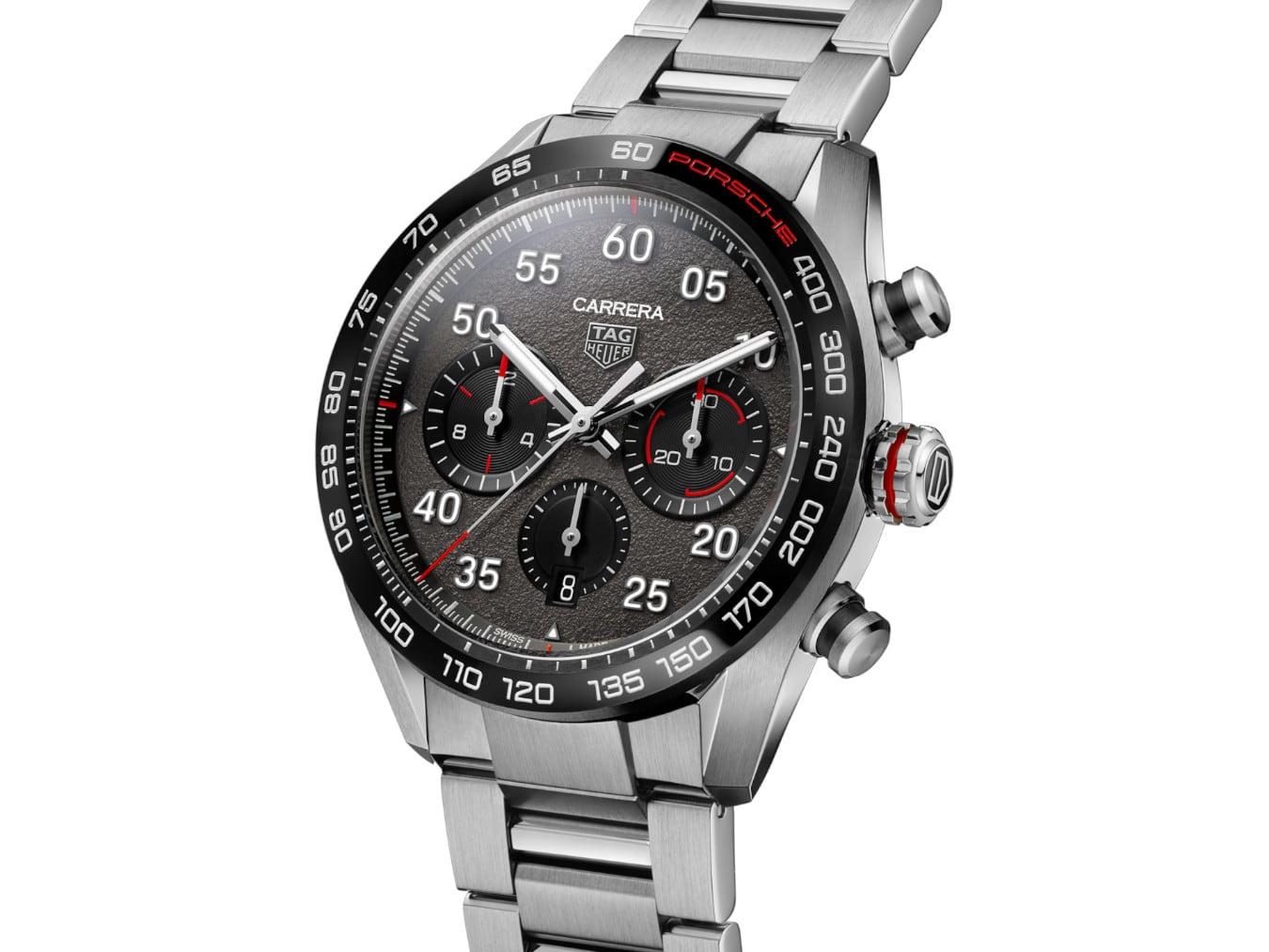 Fuelled by a common history with innovation and motor racing at its core, the TAG Heuer Carrera Porsche Chronograph is a seamless blend of the Porsche and TAG Heuer universes. An emblematic steel watch with numerous references to Porsche and TAG Heuer codes in form, color, and asphalt effect, created especially for this watch, perfectly expresses a passion for the road.