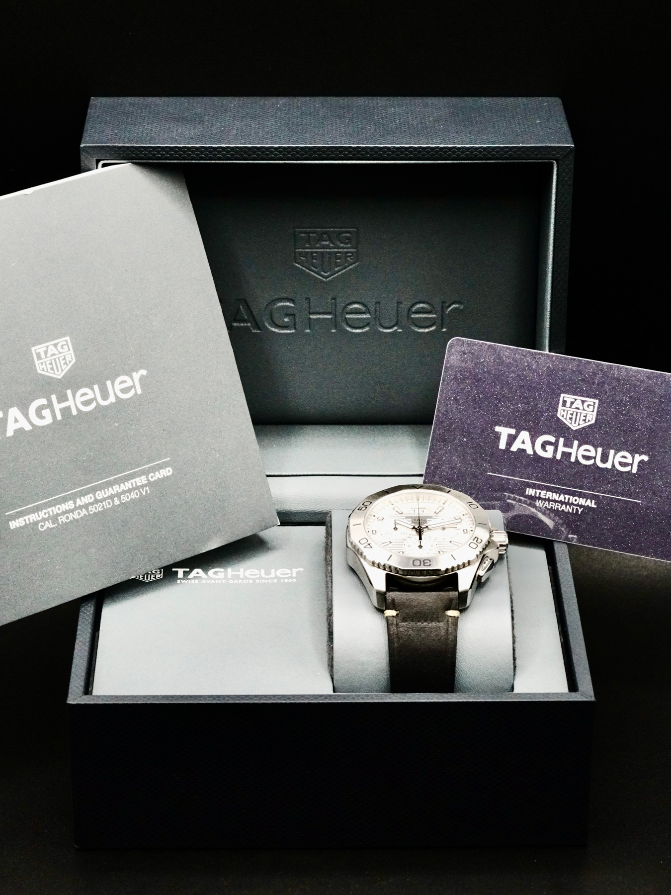 This TAG Heuer CBP1111.BA0627 AquaRacer is in EXCELLENT condition. This watch includes its original box, instruction booklet, and warranty card dated 2022. This watch has been fully authenticated and certified by Exquisite Timepieces.