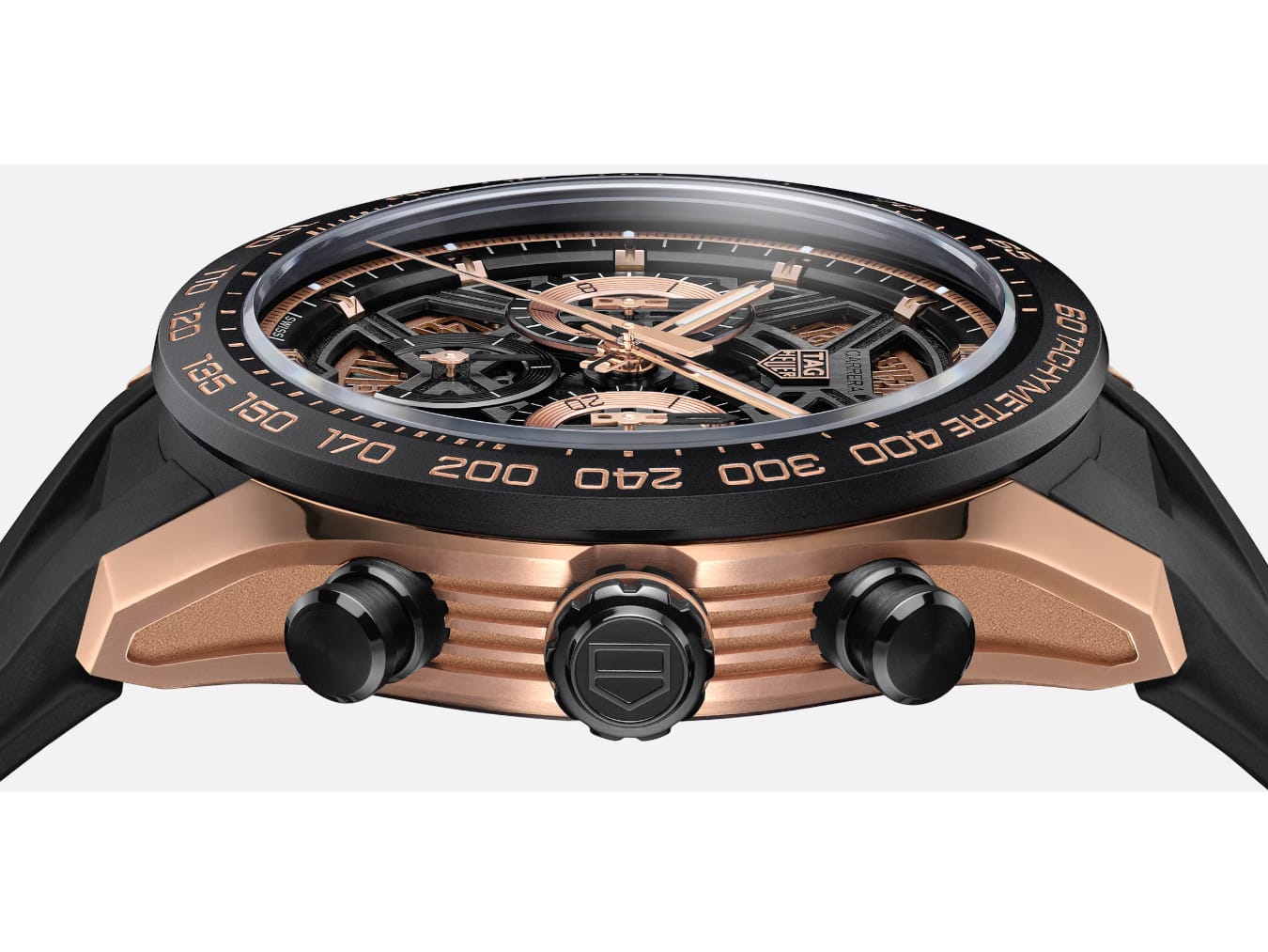 Audacity meets elegance in this one-of-a-kind TAG Heuer Carrera Chronograph. With its skeleton design and rose gold accents, this exhilarating chronograph embodies the spirit of motorsport and luxury combined—a timepiece for those who dare to stand out.