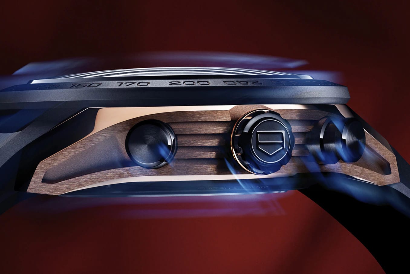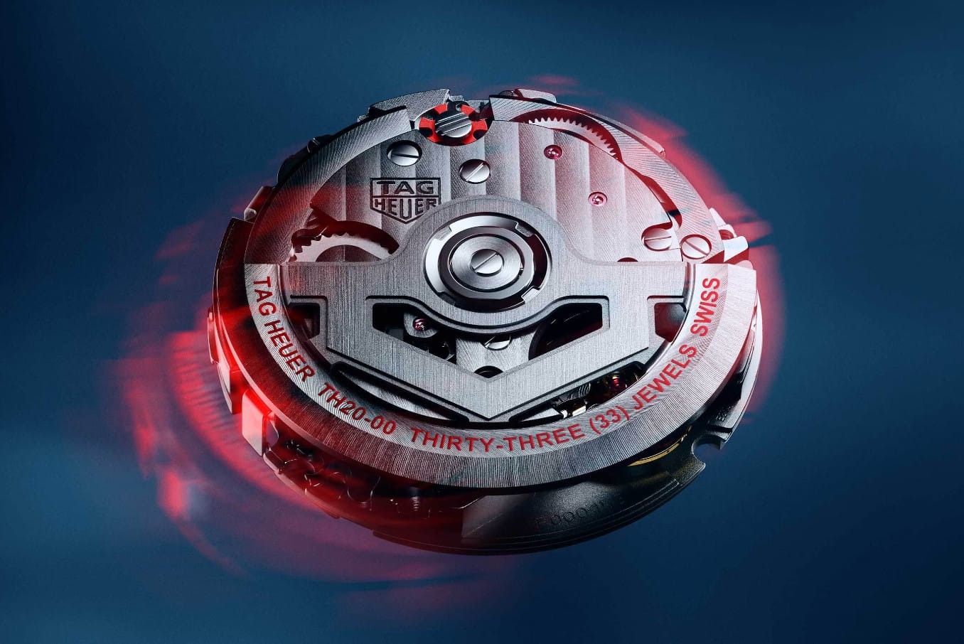 At its core, the ultra-reliable TH20-00 in-house movement with NAC finishing and black detailing reflects the watch's racing heritage and technical prowess.