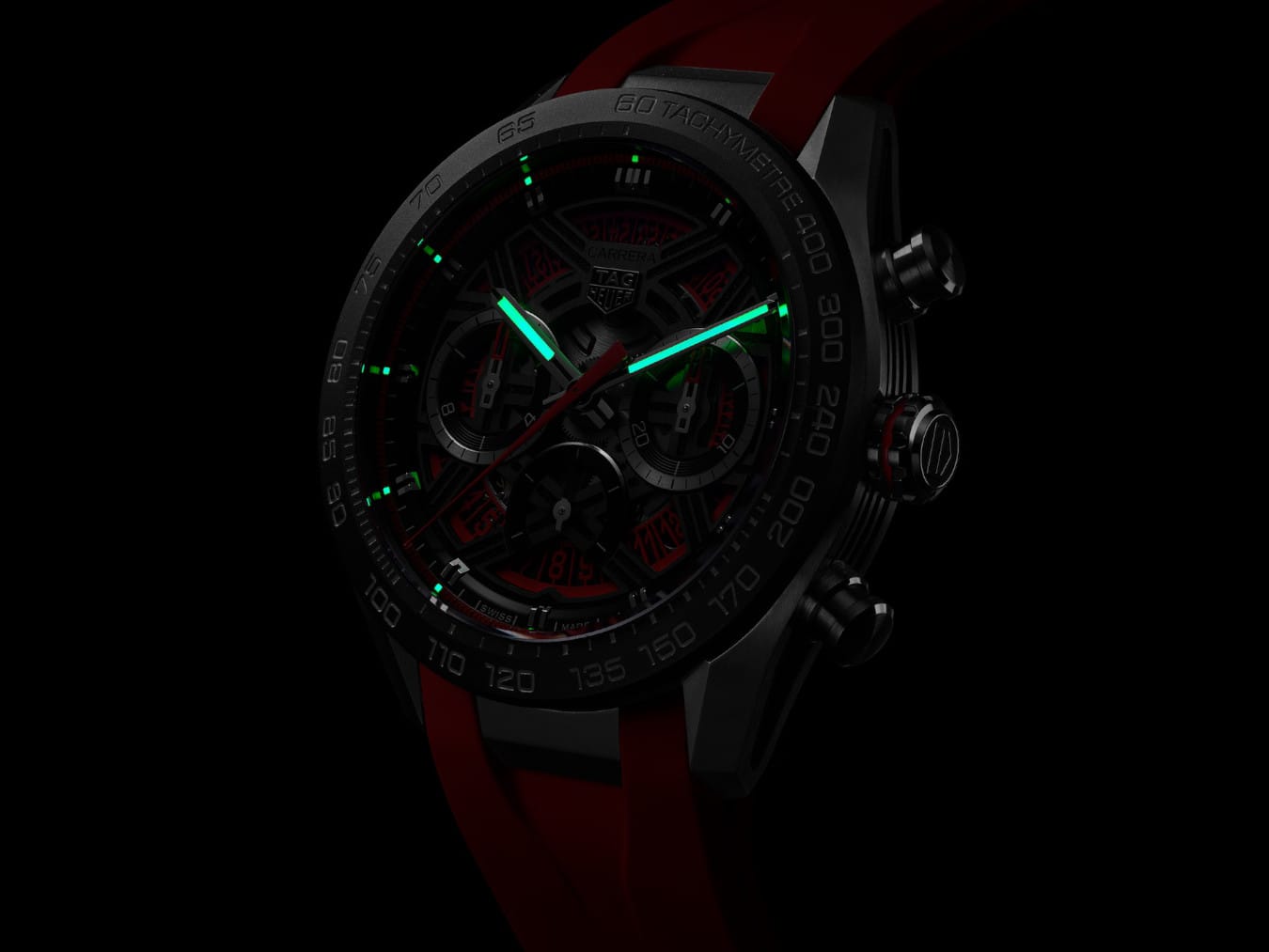 Feel the adrenaline rush of motorsport with this TAG Heuer Carrera Chronograph, where audacity meets precision. The skeleton dial, a nod to the Maison's shield logo, reveals the vibrant mechanics of passion and performance.