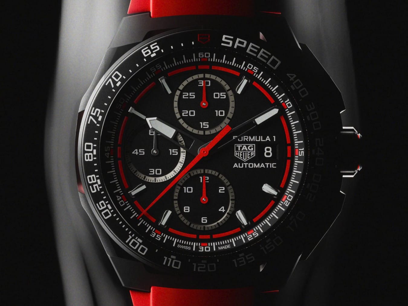 Inspired by the intensity of racing, the TAG Heuer Formula 1 Chronograph in 44mm is crafted for true racing enthusiasts. The sleek titanium grade 2 case and vibrant red accents make this timepiece a bold statement on and off the track.