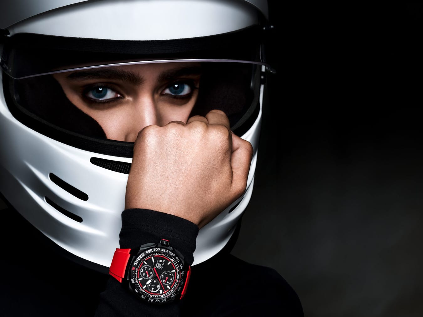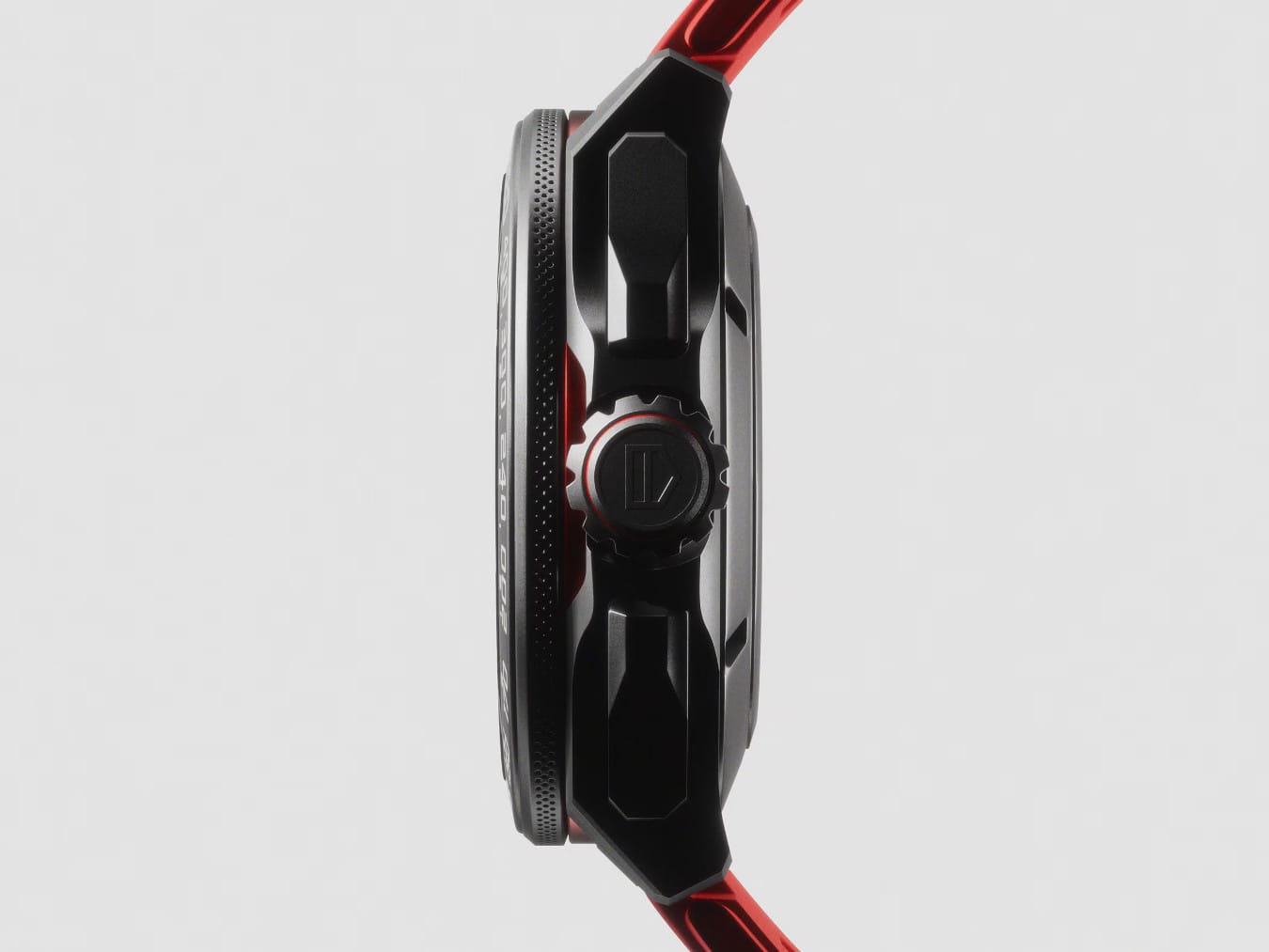 Equipped with the Calibre 16 automatic movement, the chronograph ensures high performance and accuracy. The Titanium grade 2 push buttons and crown complete the dynamic design, reflecting the watch's racing pedigree.
