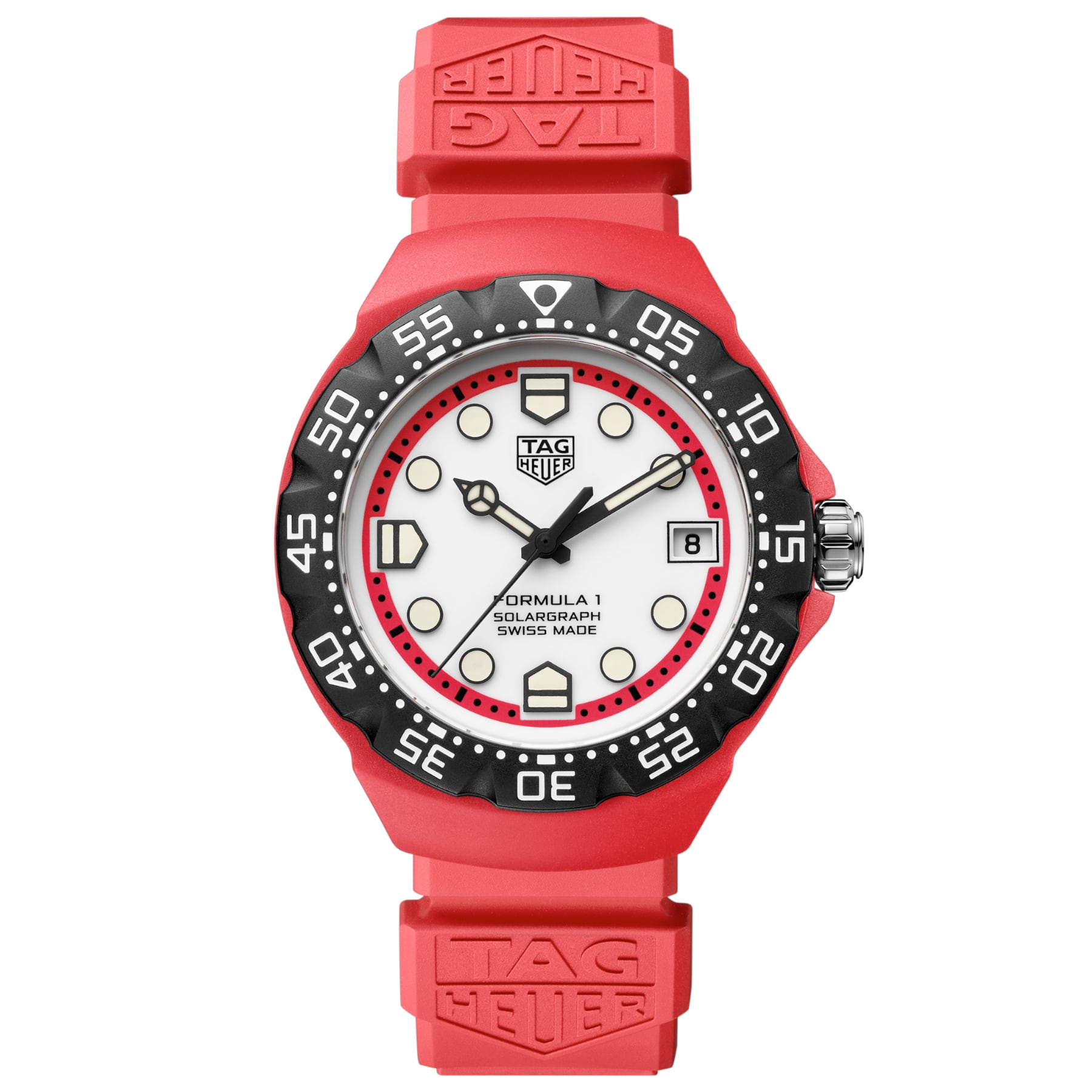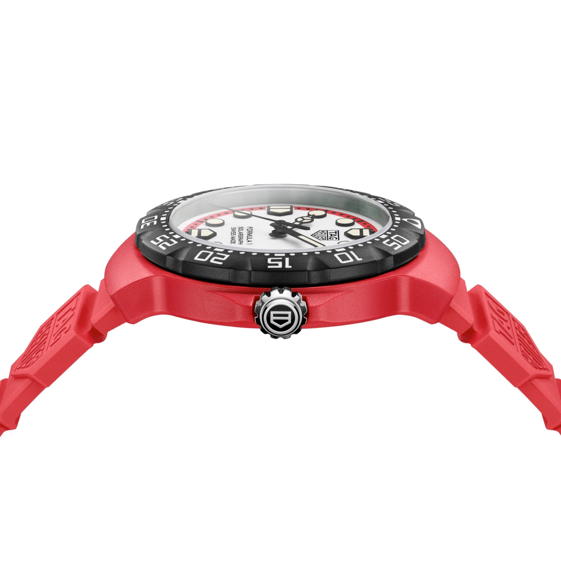 The TAG Heuer Formula 1 Solargraph (38mm) delivers a bold, eye-catching look with its red TH-Polylight case. Designed for daring urban adventures, this exclusive timepiece blends vibrant colors and cutting-edge solar-powered technology, making it a standout in the TAG Heuer Formula 1 collection.