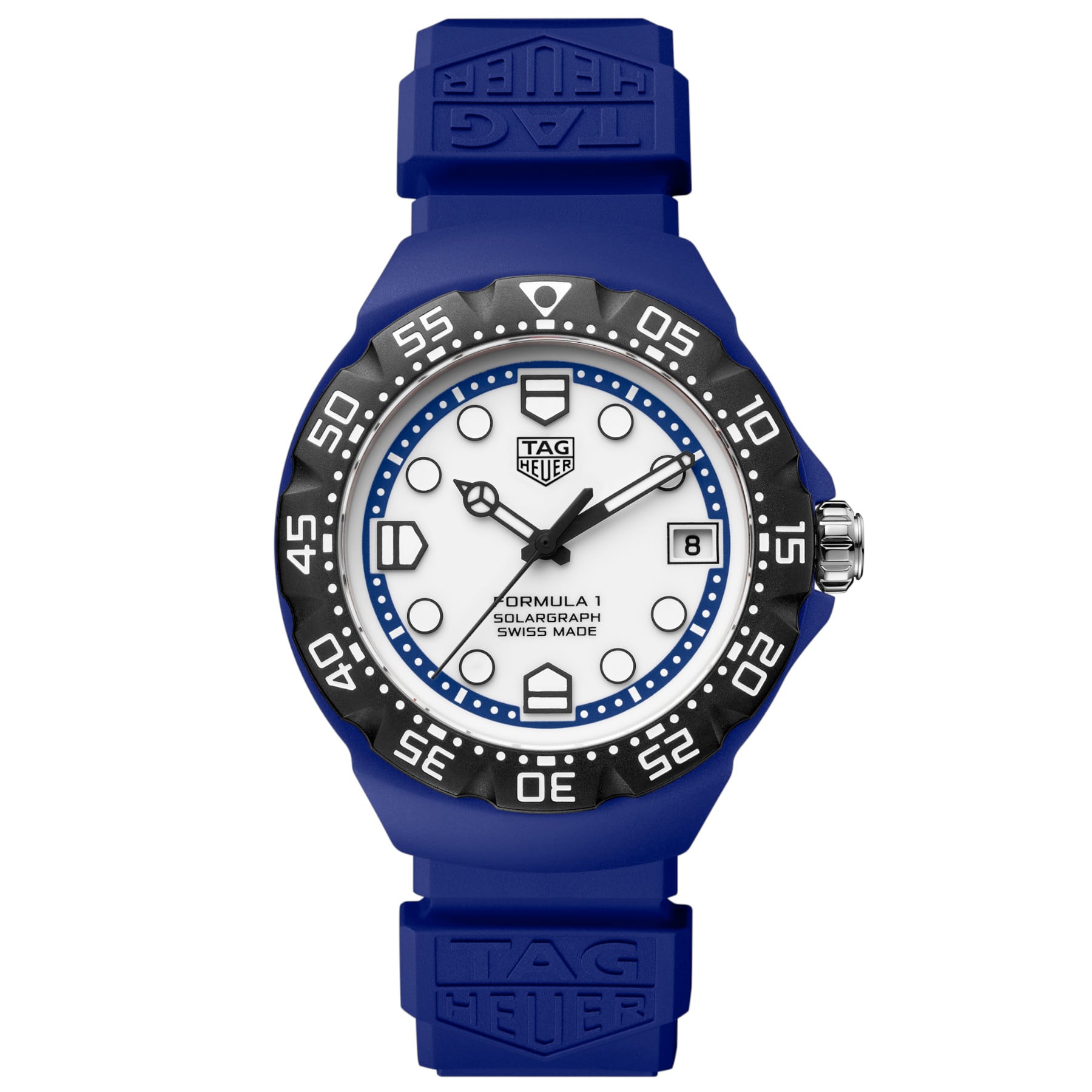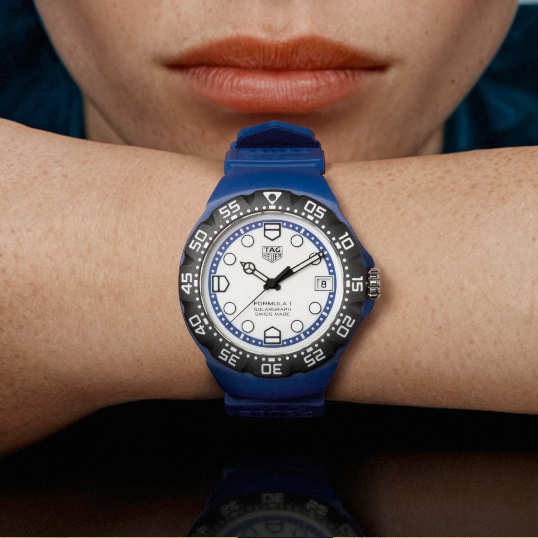The TAG Heuer Formula 1 Solargraph (38mm) makes a bold statement with its vibrant blue TH-Polylight case and solar-powered precision. Combining innovative materials and high-performance technology, this limited edition watch is a fresh take on the original ‘80s Series 1 watch.