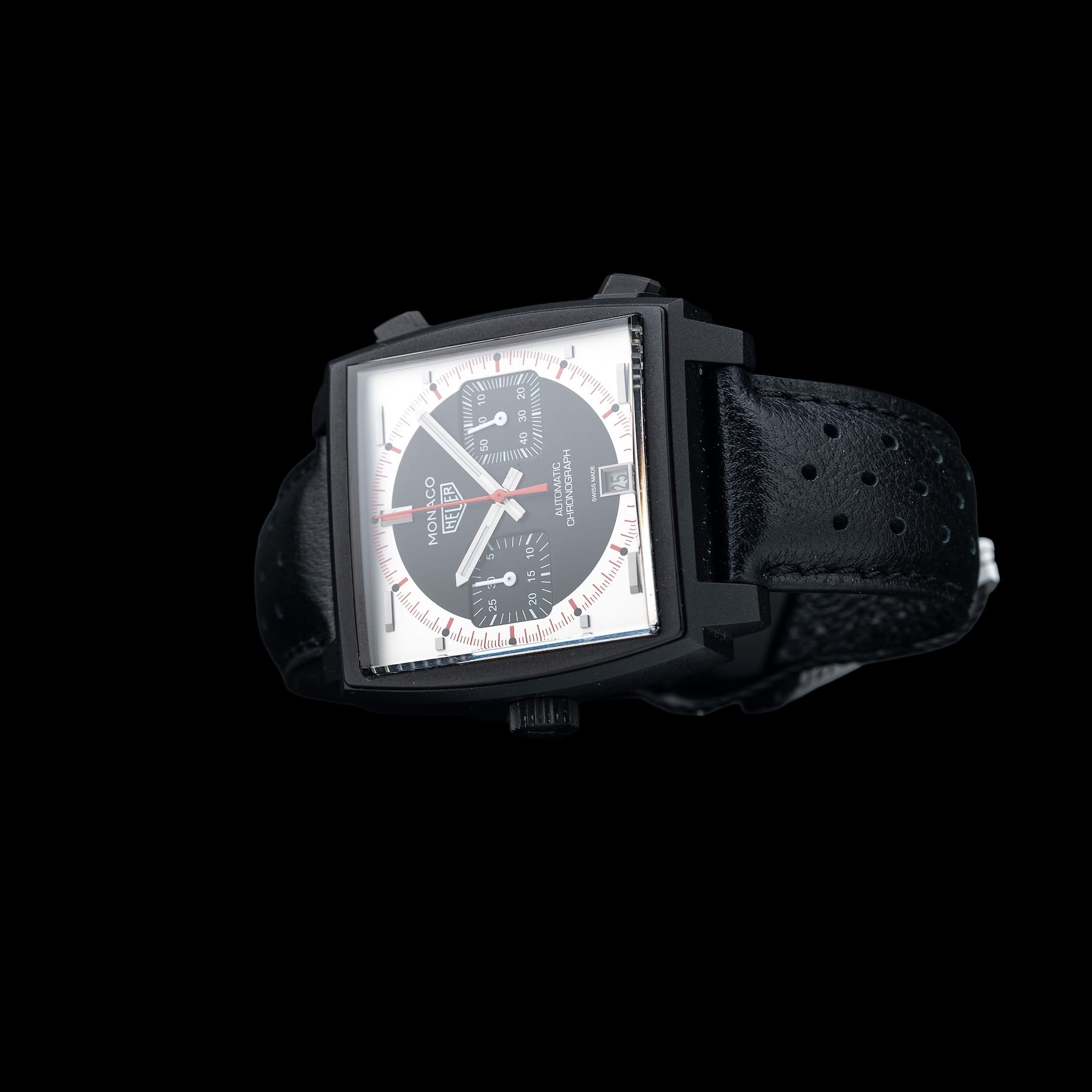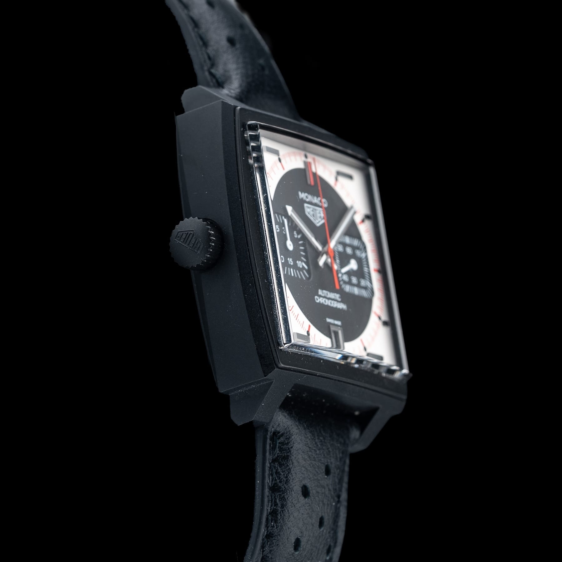 This watch features a 39mm titanium case on leather strap. This watch also sports a black and silver dial. Powered by a calibre 11 automatic movement. Water resistance up to 100 meters.