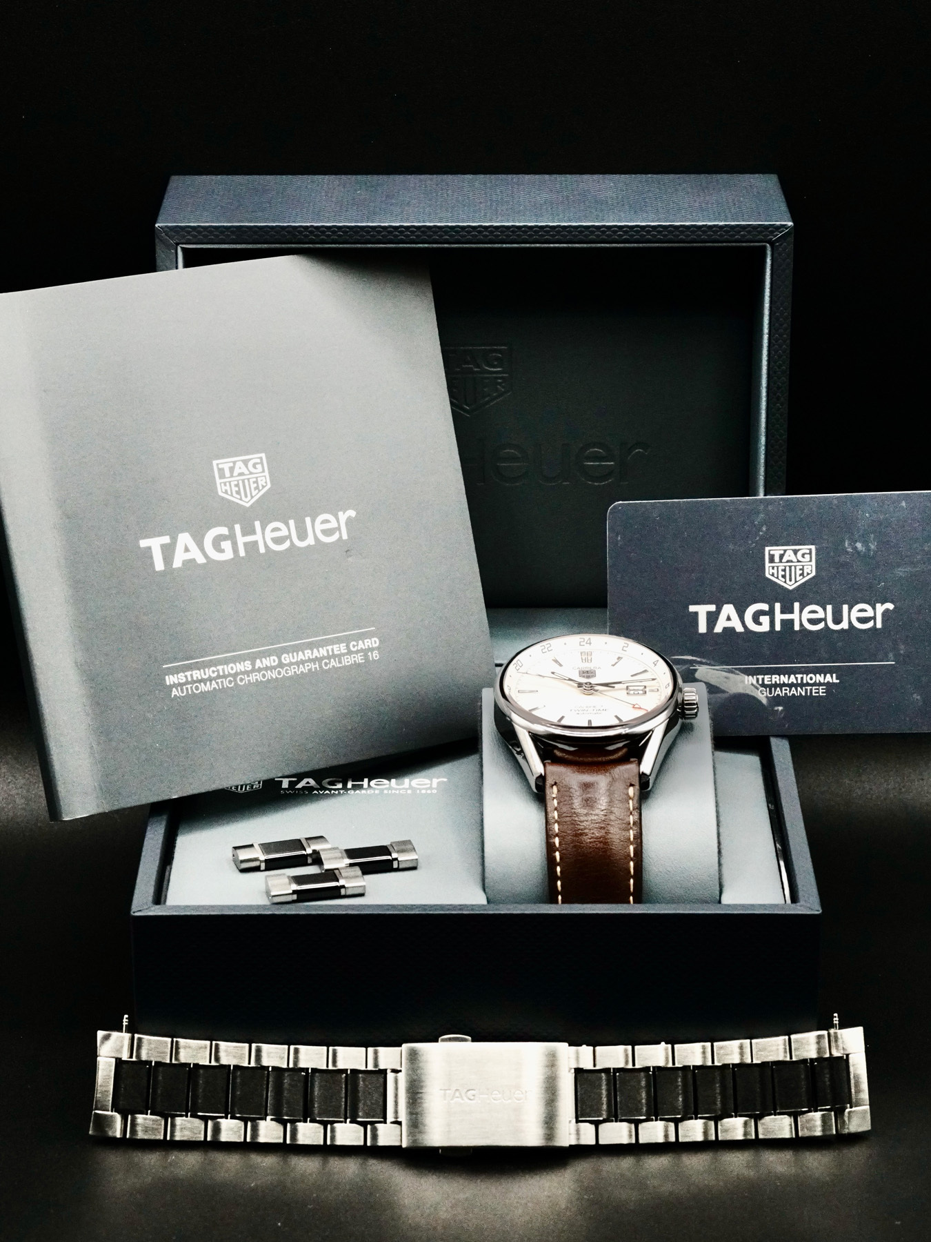 This TAG Heuer WAR2011.FC6291 Carrera is in GREAT condition. This watch includes original box, papers, instruction booklet, extra stainless steel bracelet and links, and warranty card. This watch has been fully authenticated and certified by Exquisite Timepieces.