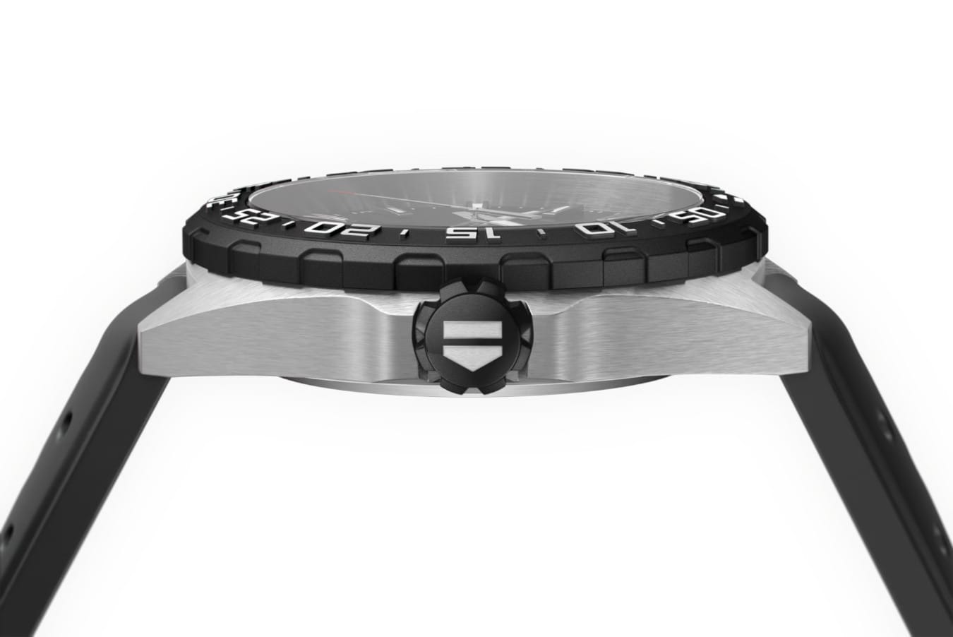 A men’s sports watch with black dial in a brushed steel case. The 41mm case is brushed stainless steel matched with a steel black PVD unidirectional turning bezel and screw-down crown. The look is sporty, urban and fearless.