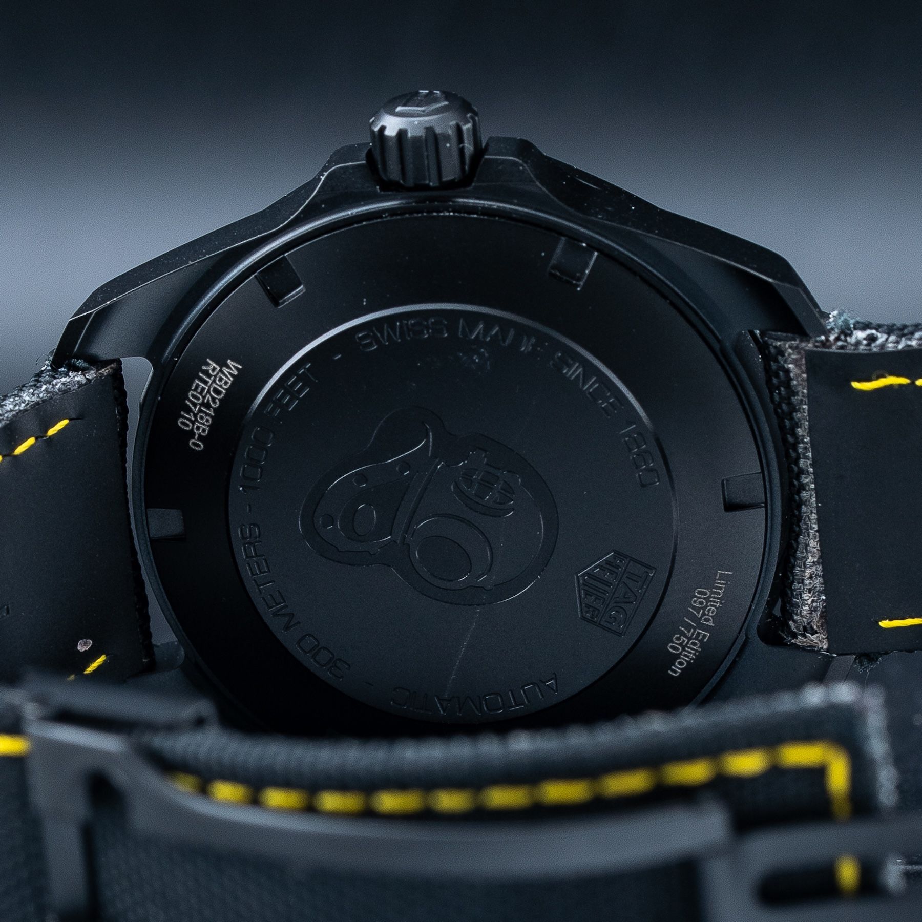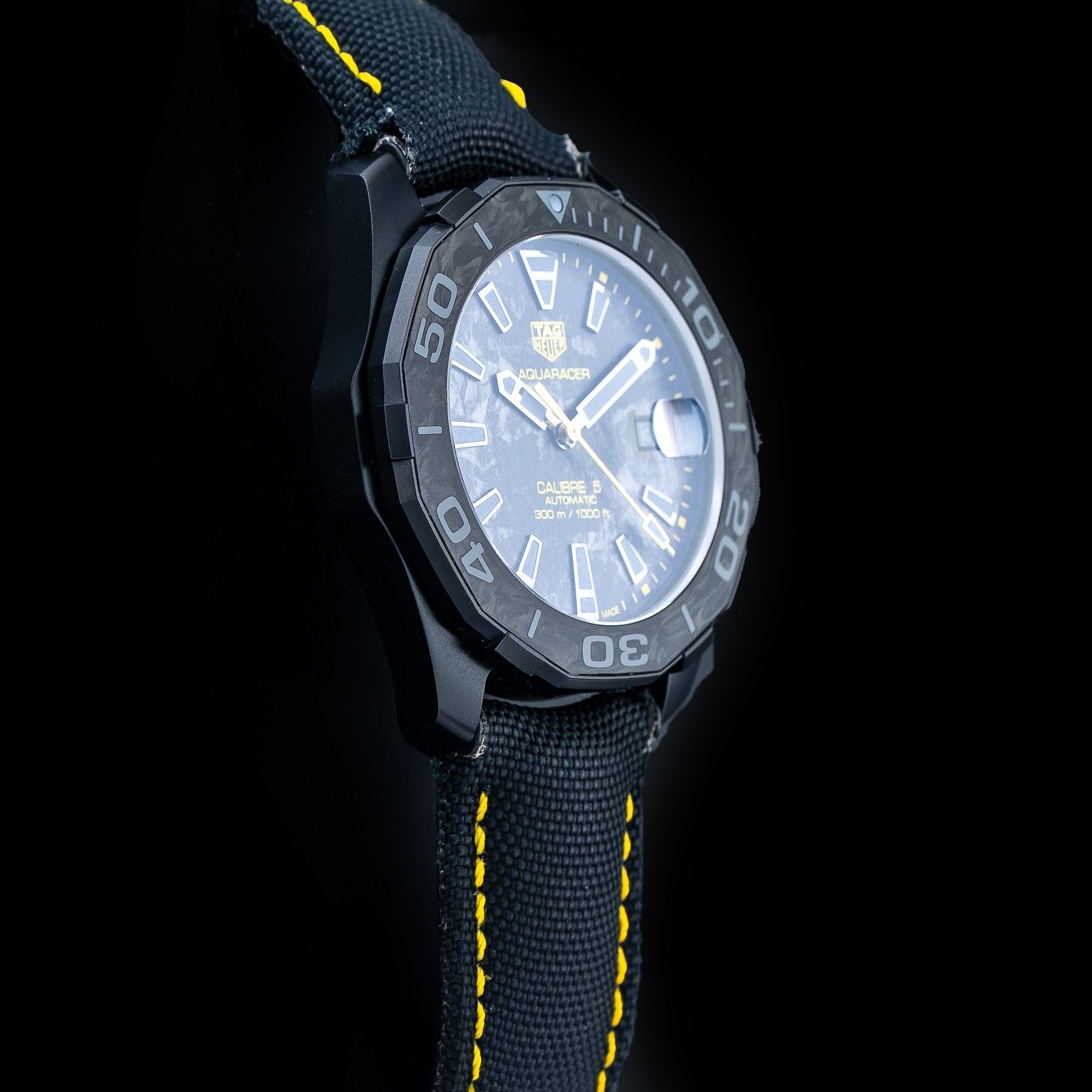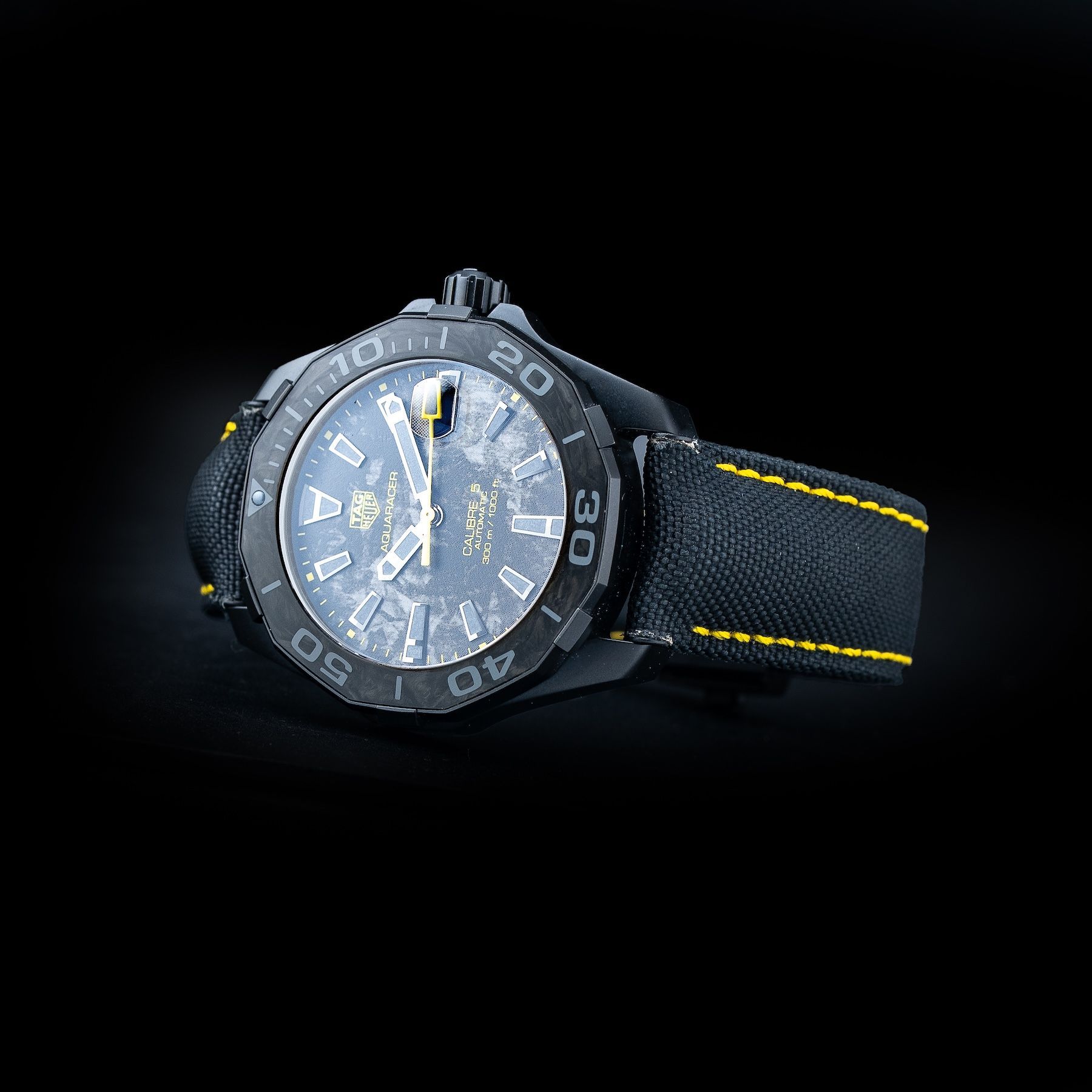 This watch features a 41mm Titanium PVD & Carbon PVD case on NYLON strap. This watch also sports a Carbon dial. Powered by a calibre 5 automatic movement. Water resistance up to 300 meters.