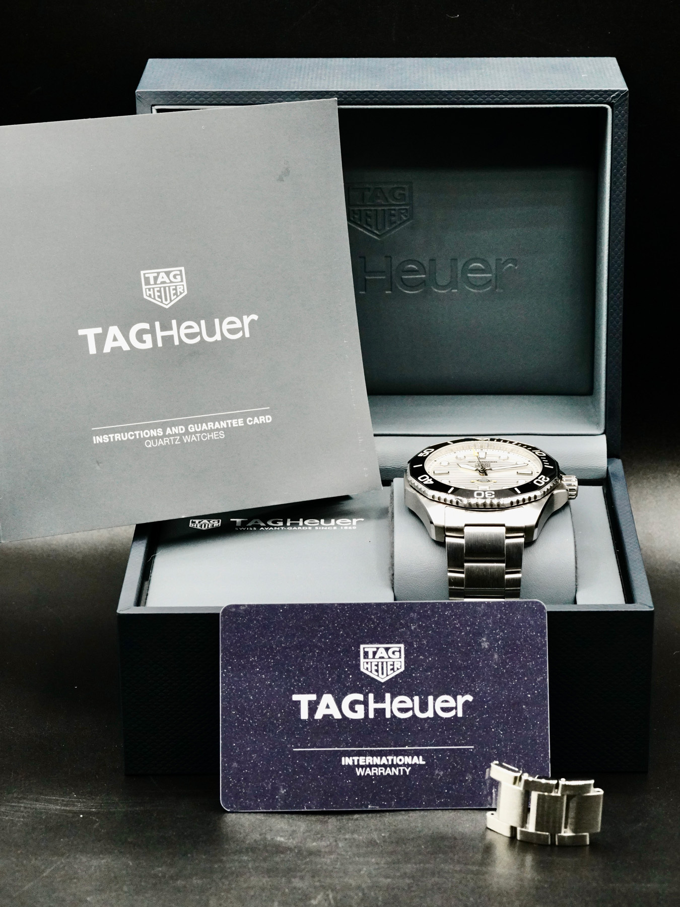 This Tag Heuer WBP201C.BA0632 Aquaracer is in EXCELLENT condition. This watch includes its original box, instruction manual, and international warranty card dated for May 2022. Extra stainless steel bracelet links.