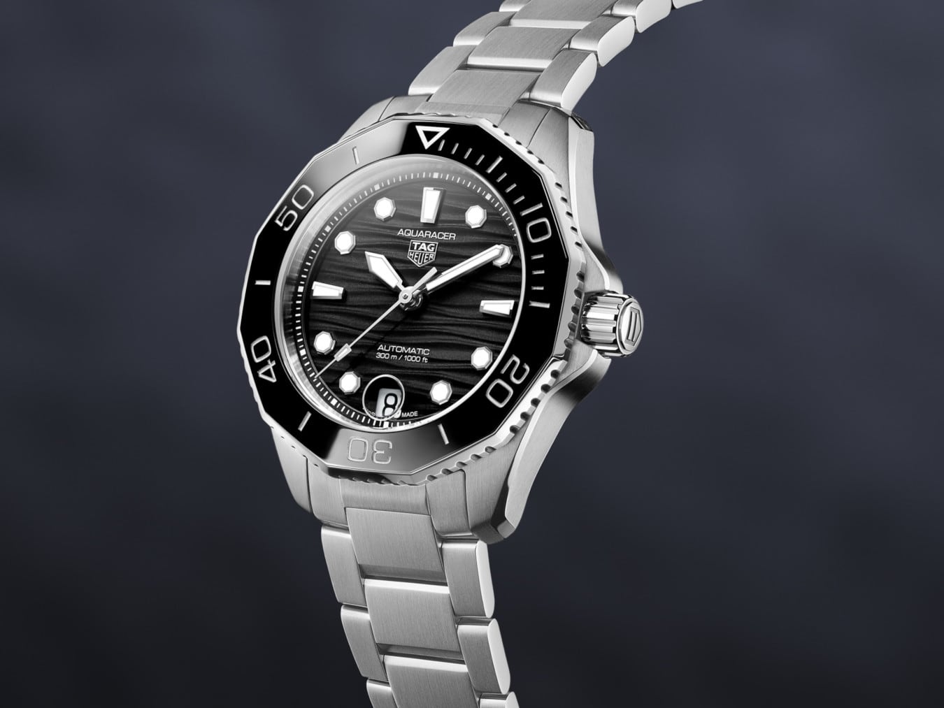 A professionnal tool for the deeps. Powered by the automatic Calibre 5 movement, the TAG Heuer Aquaracer features a black dial with wavy finishing. Its new slim case with tapered bracelet and adjustable clasp makes it fit for any achievement.