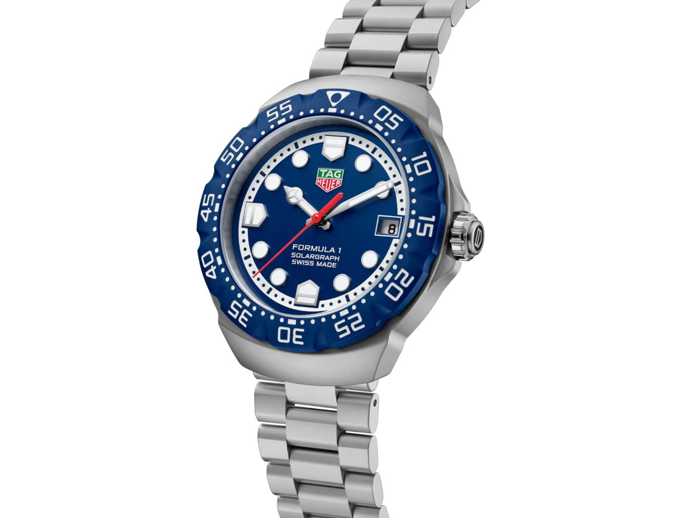 Inspired by the original Series 1 watch, the TAG Heuer Formula 1 Solargraph in 38mm expands the energetic aesthetic with a vibrant blue dial and sleek design. Combining a playful style with functionality, this solar-powered timepiece is made for trendsetters who value both style and innovation.