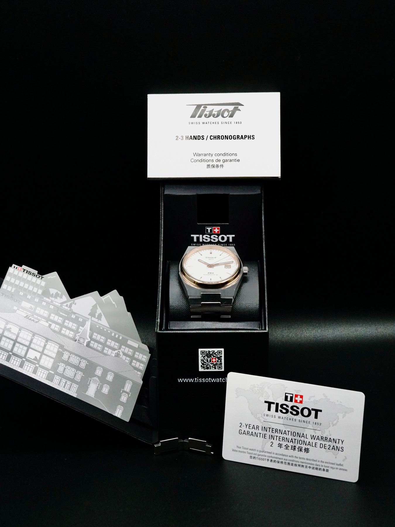 This Tissot PRX Powermatic 80 T137.407.21.031 is in EXCELLENT condition. This watch includes its original box, instructions, and international warranty card. No date on warranty card. Extra stainless steel bracelet links.