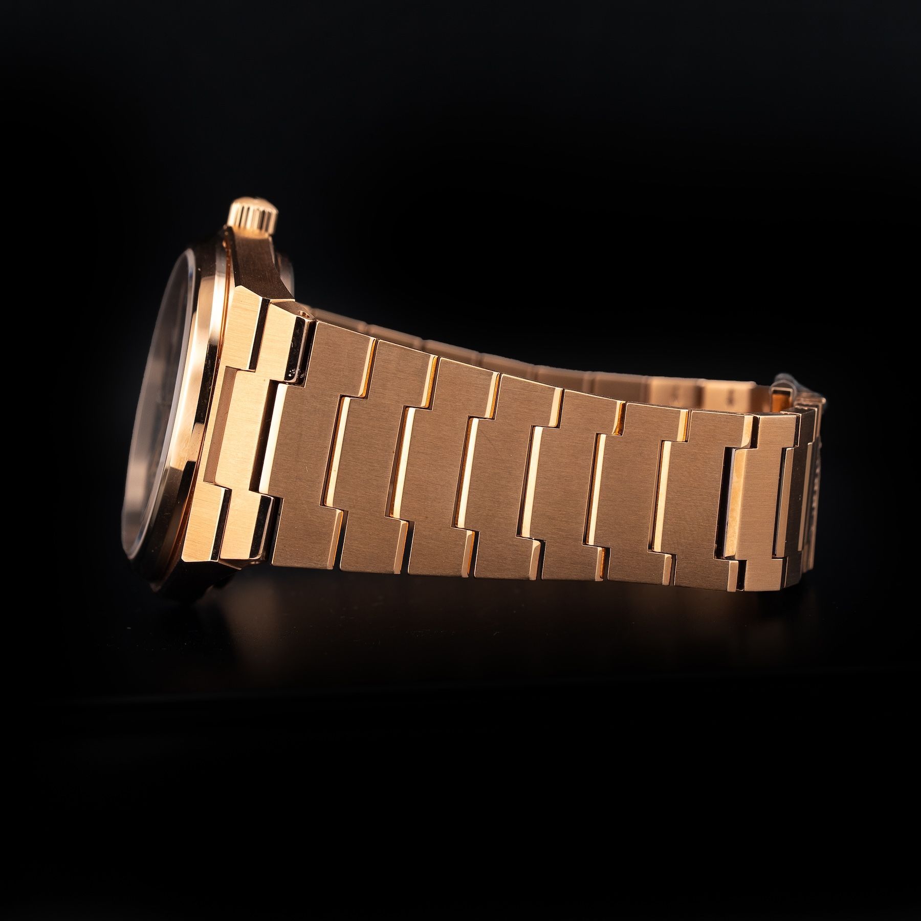 This watch features a 40mm stainless steel case on stainless steel bracelet. This watch also sports a blue dial. Powered by a swiss automatic movement. Water resistance up to 100 meters.