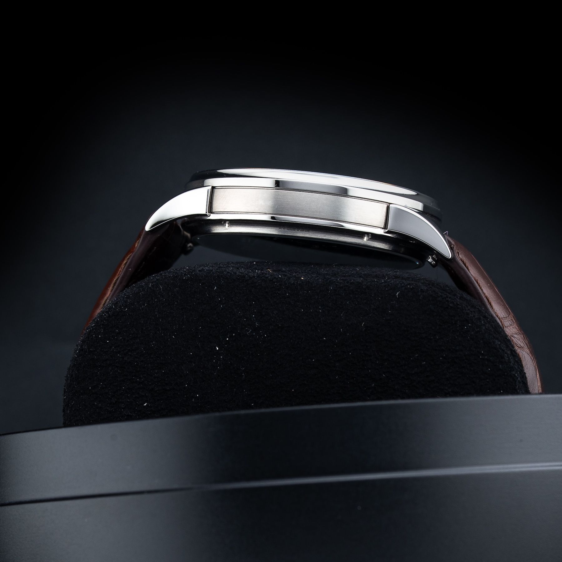 This watch features a 38.5mm titanium case on leather strap. This watch also sports a sand dial. Powered by a mechanical automatic movement. Water resistance up to 50 meters.