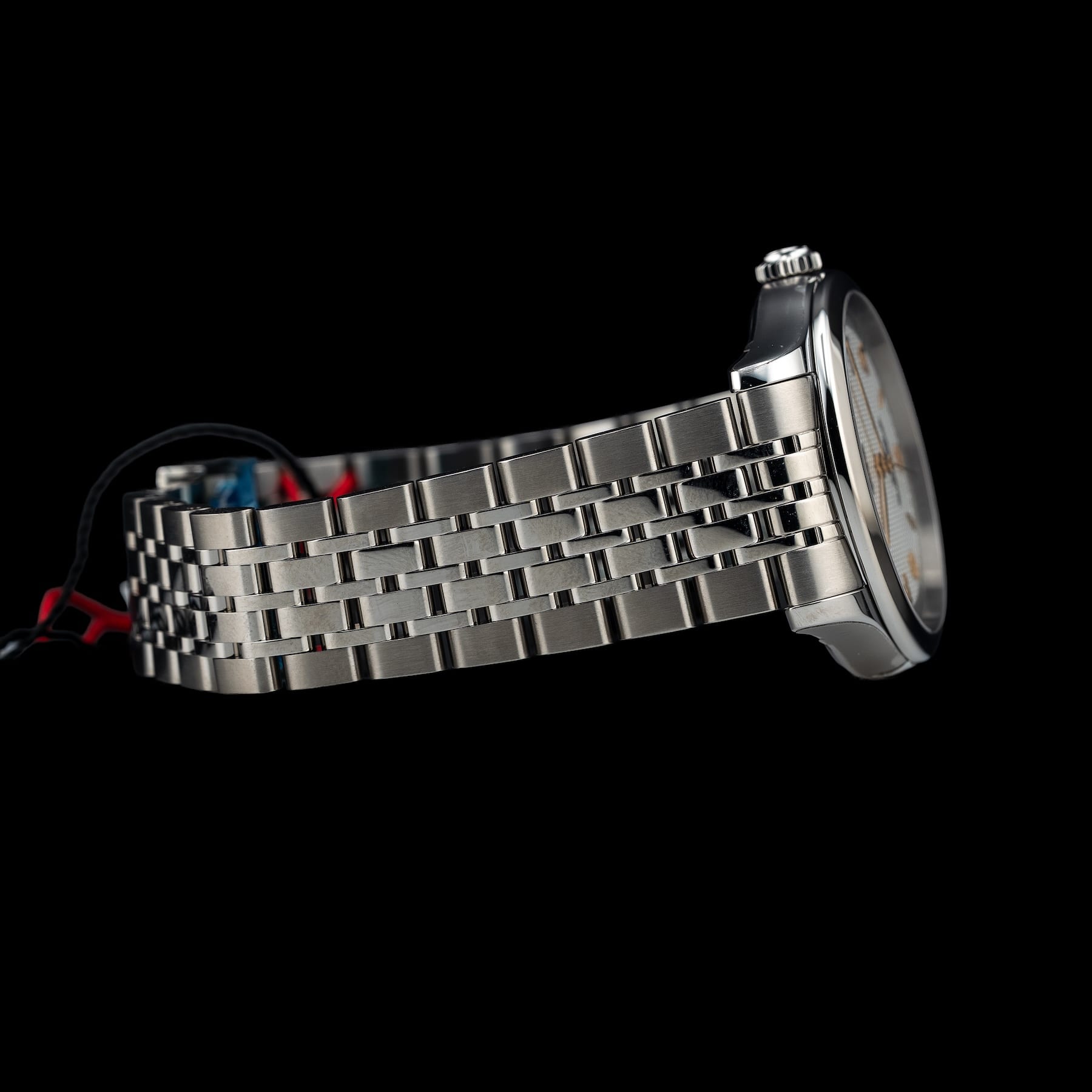 This watch features a 36mm steel case on steel bracelet. This watch also sports a silver dial. Powered by a self-winding movement. Water resistance up to 100 meters.