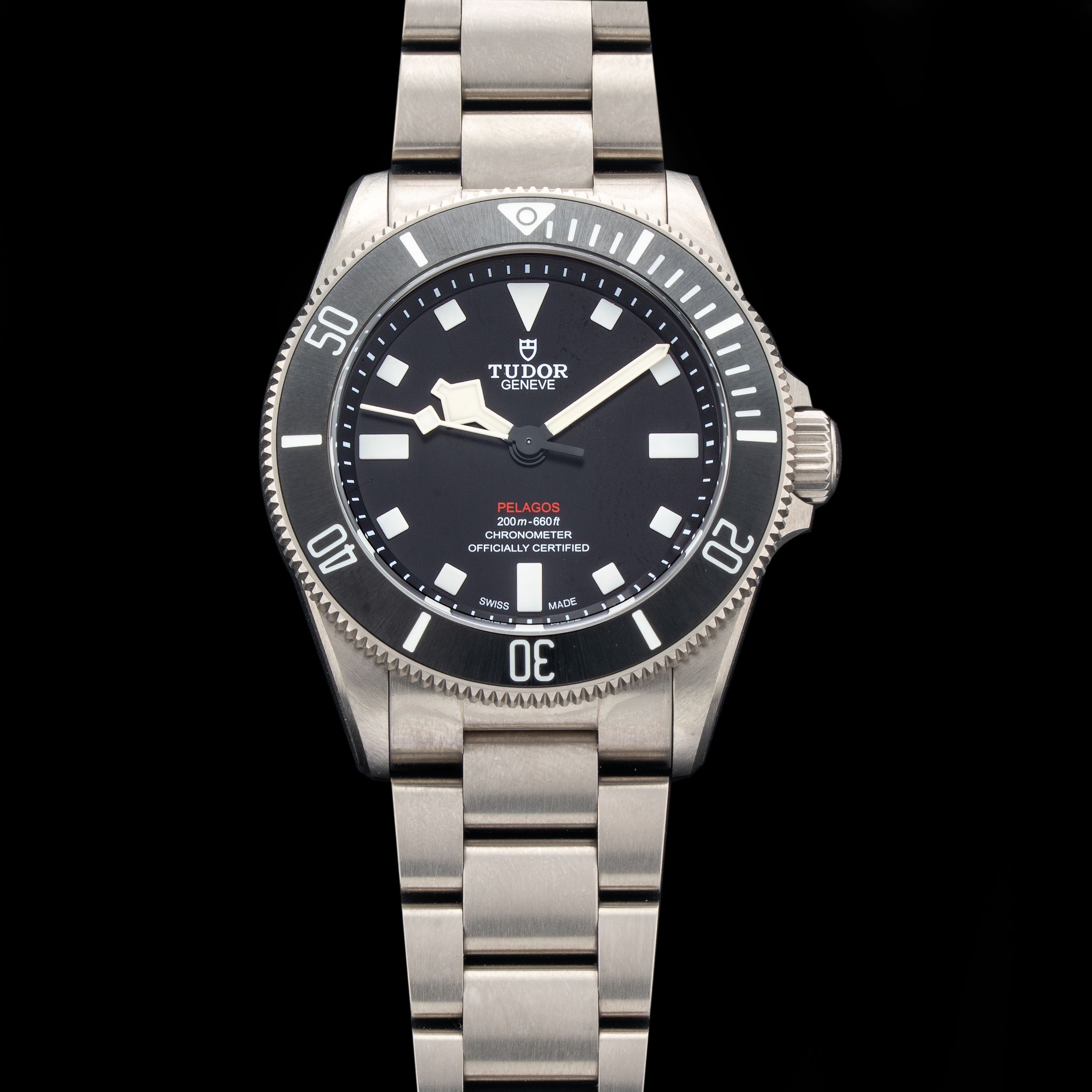 This TUDOR 25407N Pelagos 39mm Black Dial is in GREAT condition, it has boxes, papers and warranty card dated 25/02/2025. This watch has been fully authenticated and certified by Exquisite Timepieces.