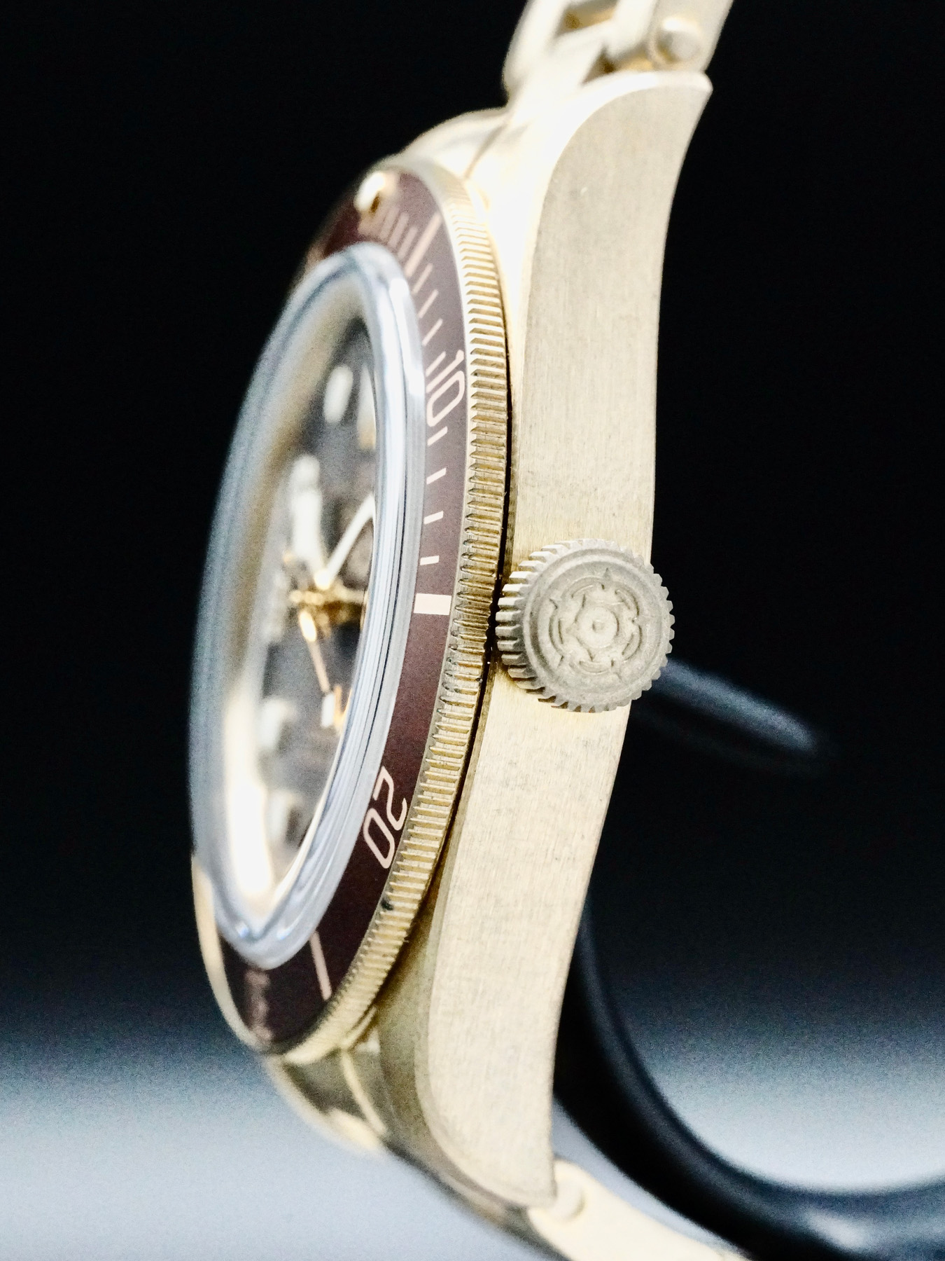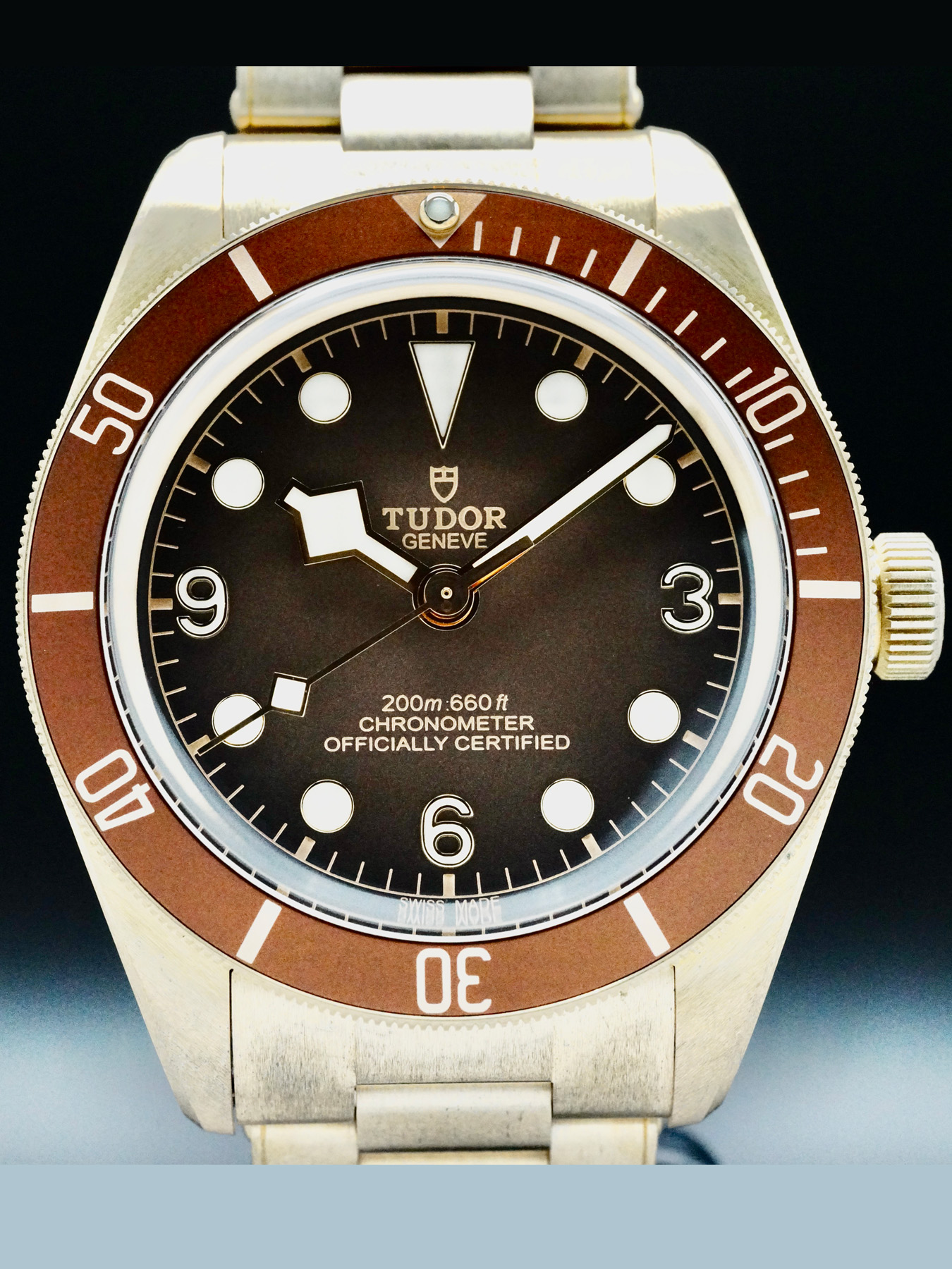 This Tudor Black Bay 58 Bronze features a 39mm satin-brushed bronze case with a solid case back on a bronze bracelet. This watch also sports a brown dial with luminous hands and dot dial markers covered by domed sapphire crystal.