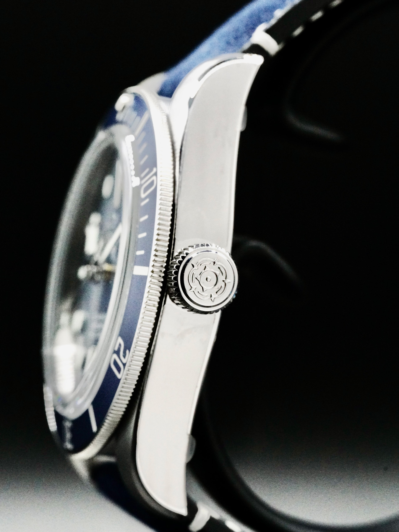 This Tudor Black Bay 58 features a 39mm stainless steel case with a solid case back on a blue leather strap. This watch also sports a blue dial with luminous hands and index dial markers covered by scratch resistant sapphire crystal.