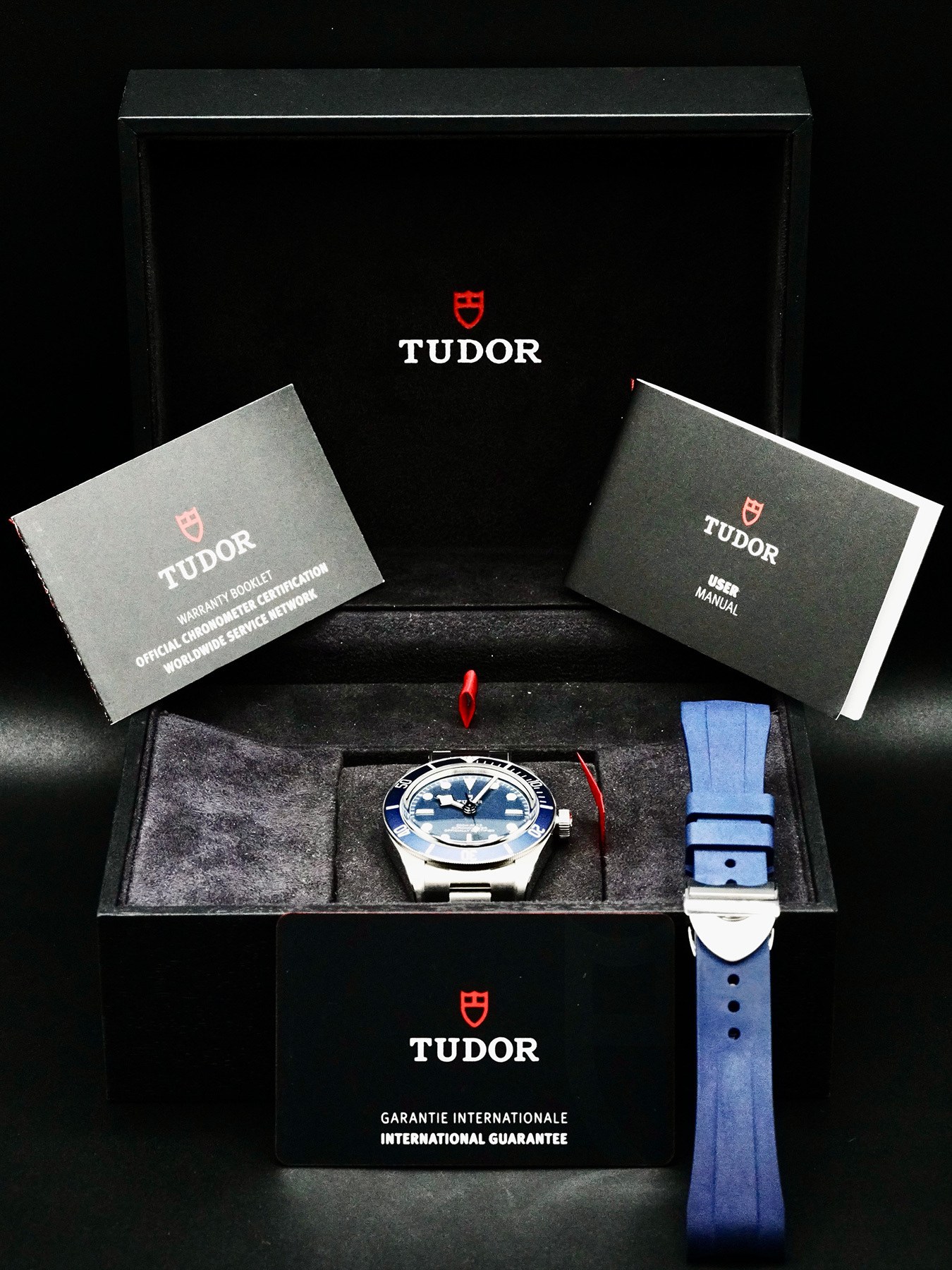 This Tudor 79030B is in GREAT condition. This watch includes its Original Box, Original Papers and Warranty Card Dated 2021. Extra blue rubber strap. This watch has been fully authenticated and certified by Exquisite Timepieces.