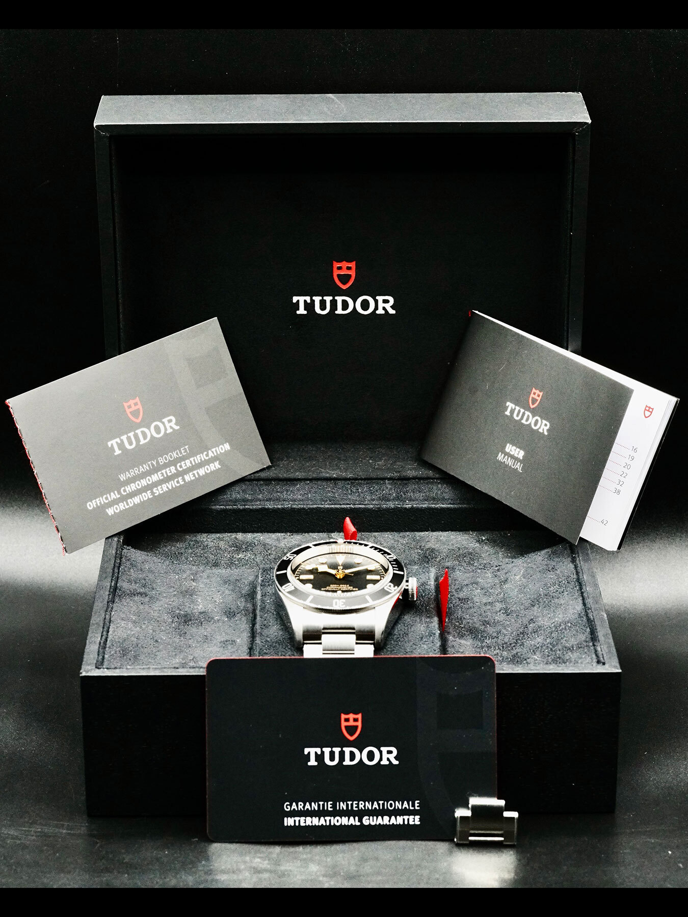 This Tudor Black Bay Black Bezel Stainless Steel 79230N is in EXCELLENT condition. This watch includes its original box, user manual, warranty booklet, and international guarantee card dated for June 2022. Extra stainless steel bracelet link.