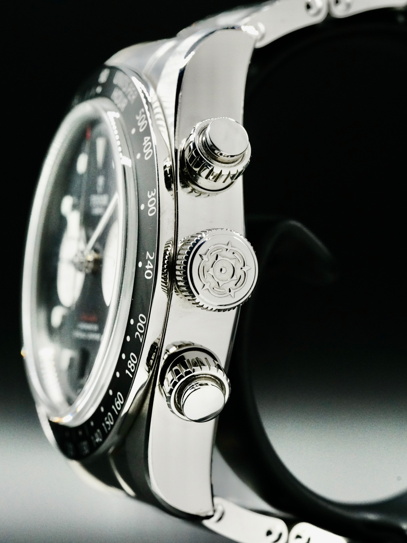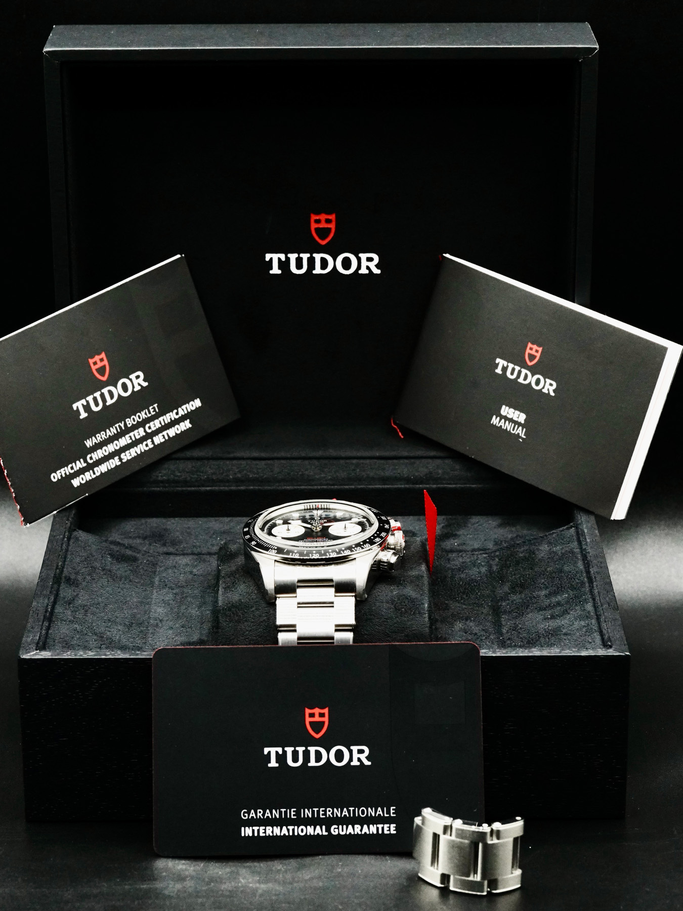 This Tudor Black Bay Chrono 79360N is in EXCELLENT condition. This watch includes its original box, user manual, warranty & worldwide service booklet, and international guarantee card dated for September 2022. Extra stainless steel bracelet links.
