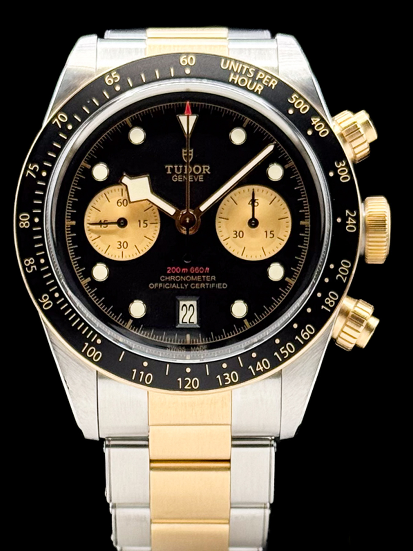 This Tudor 79363N Black Bay Chronograph is in GREAT condition. This watch includes its Original Box, Warranty 7/1/24 and Extra Link. This watch has been fully authenticated and certified by Exquisite Timepieces.