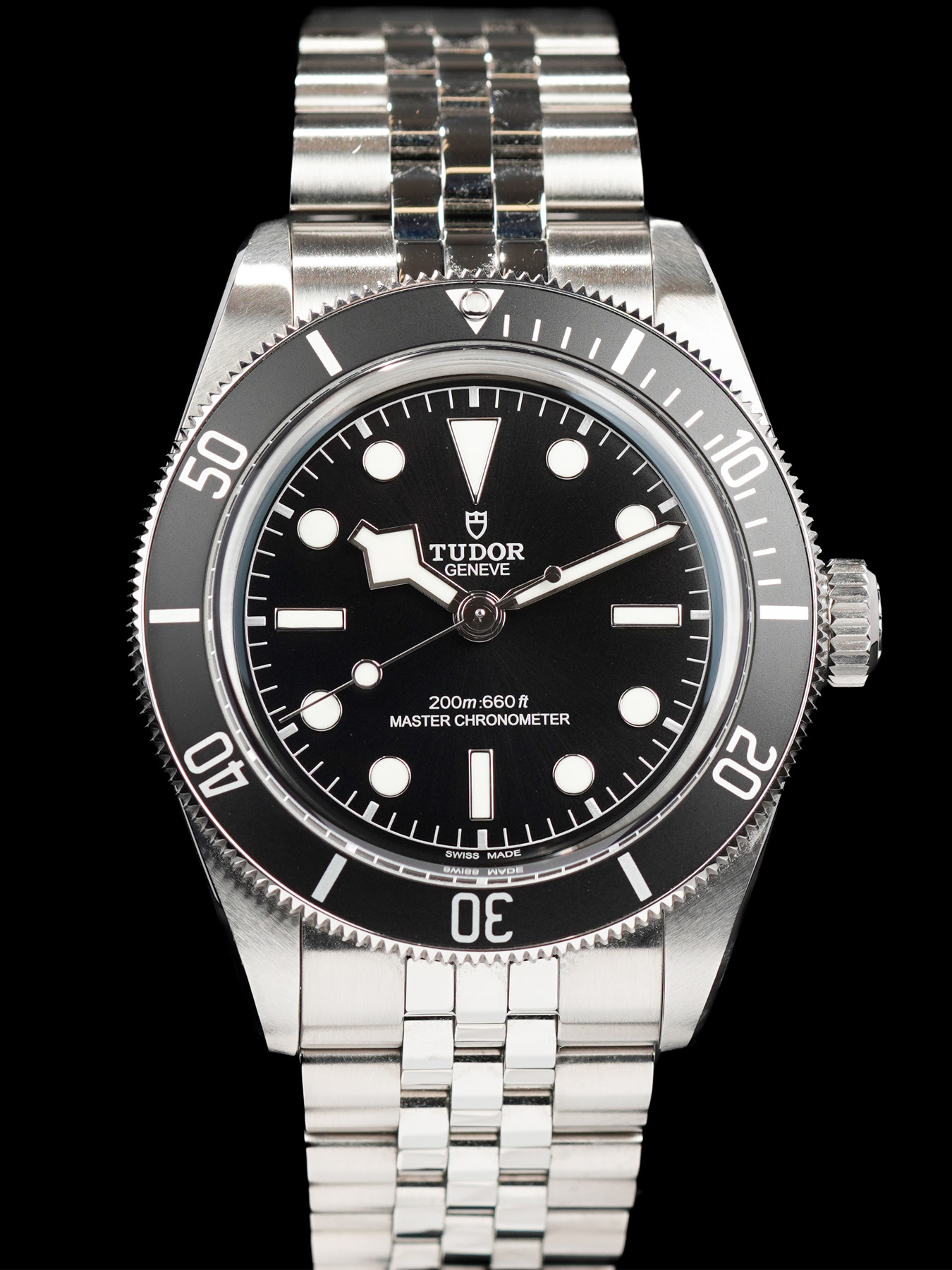 This Tudor 7941A1A0NU Black Bay is in GREAT condition. This watch includes its Original Box, Original Papers and Warranty Card Dated for 20.09.2024. Extra bracelet and bracelet links. This watch has been fully authenticated and certified by Exquisite Timepieces.