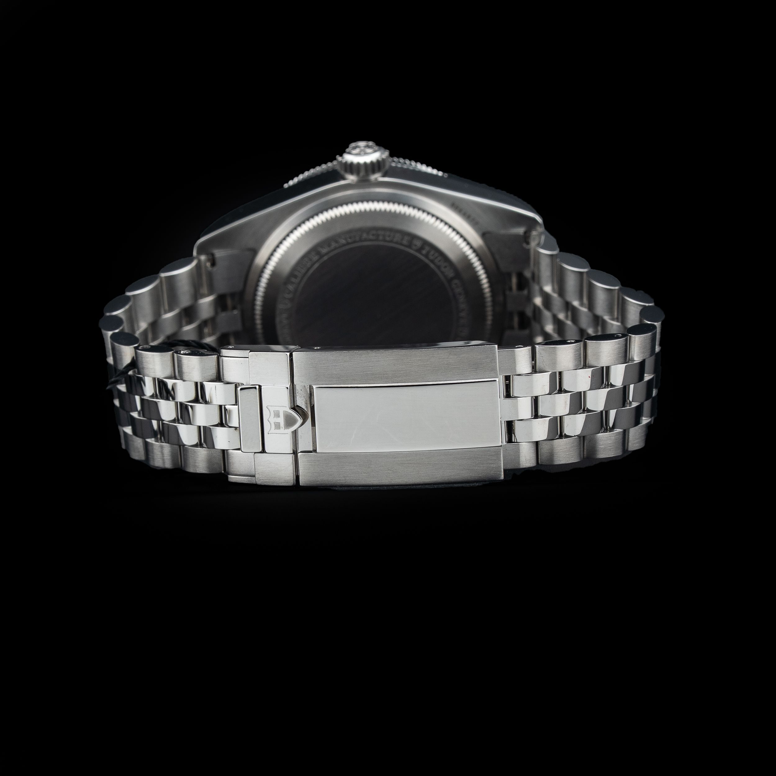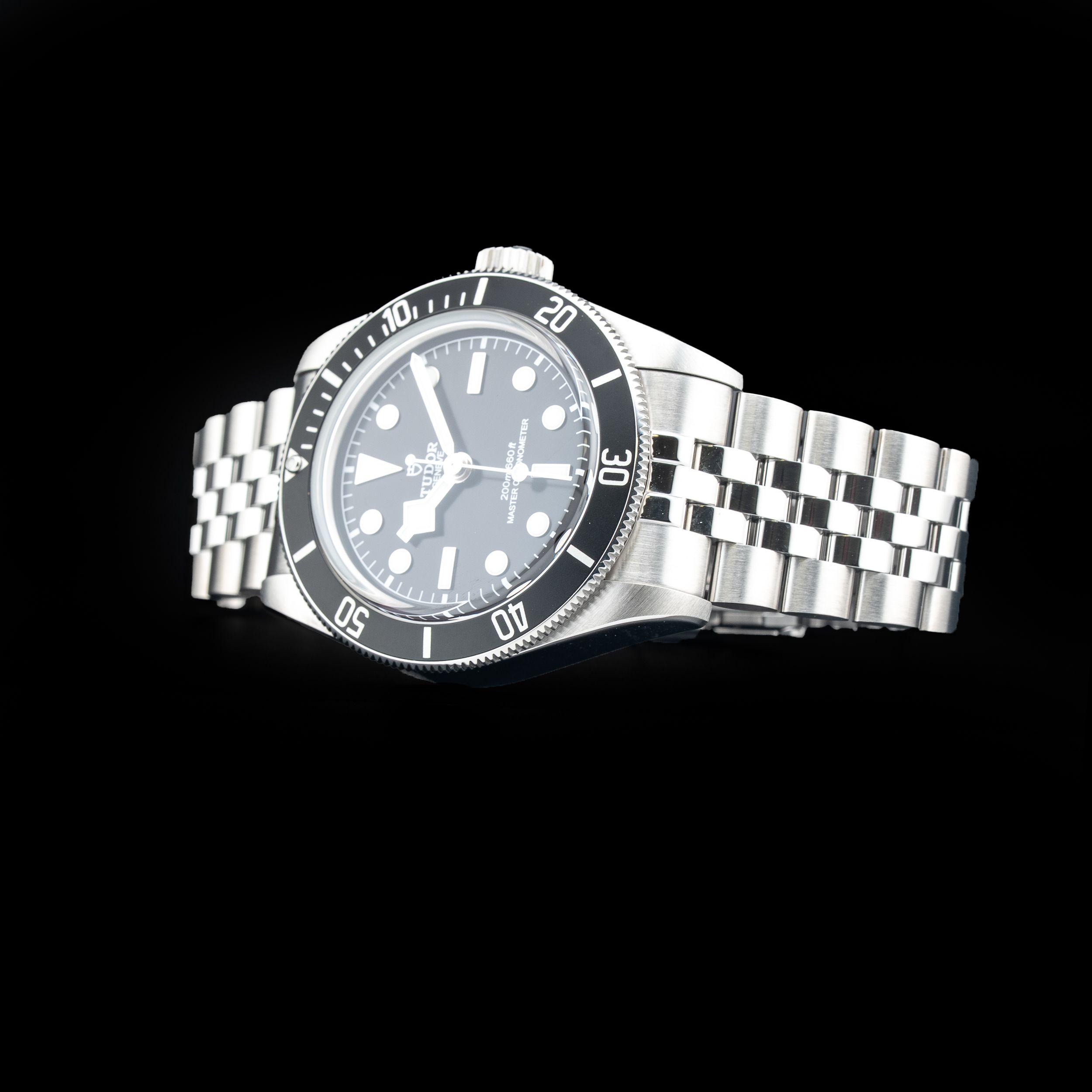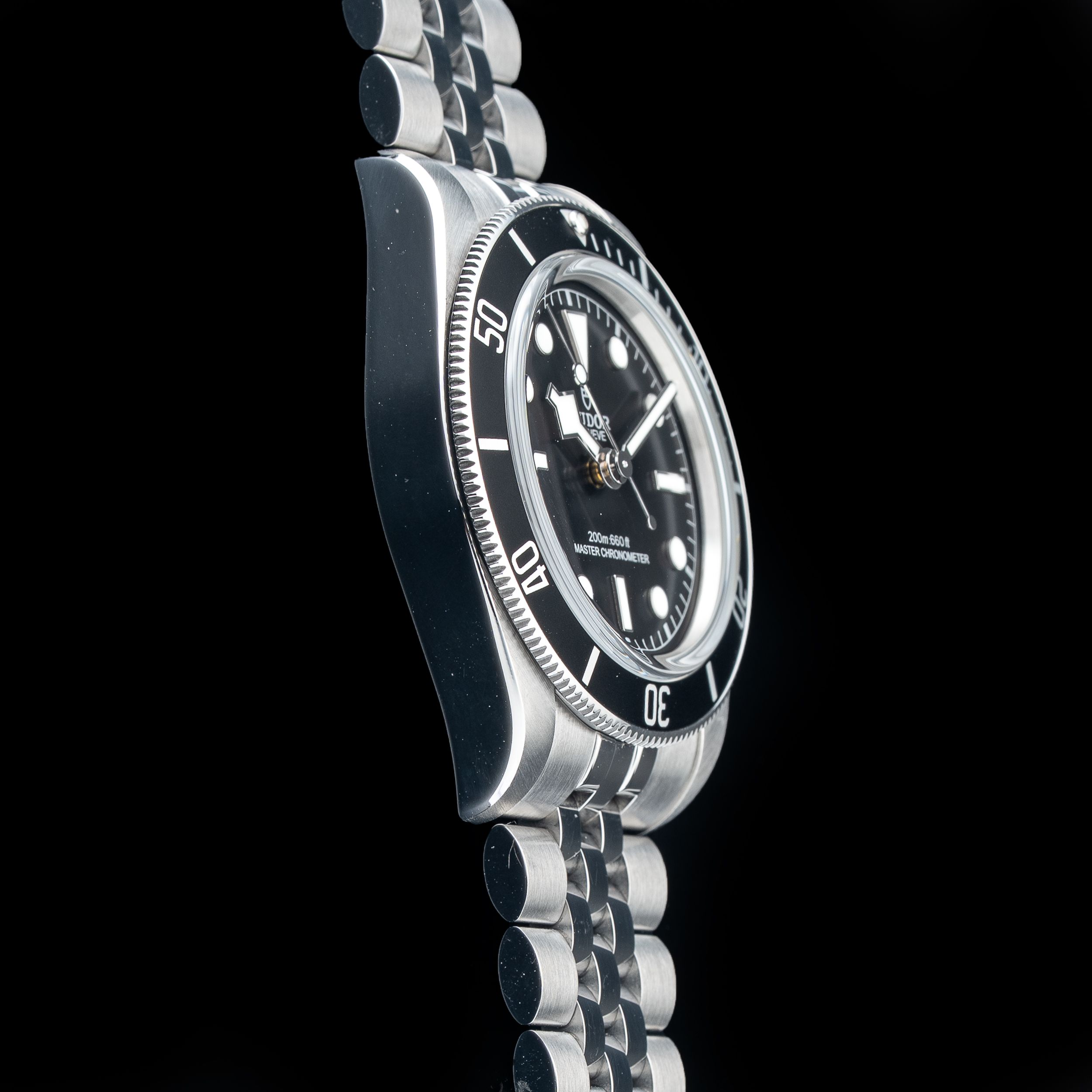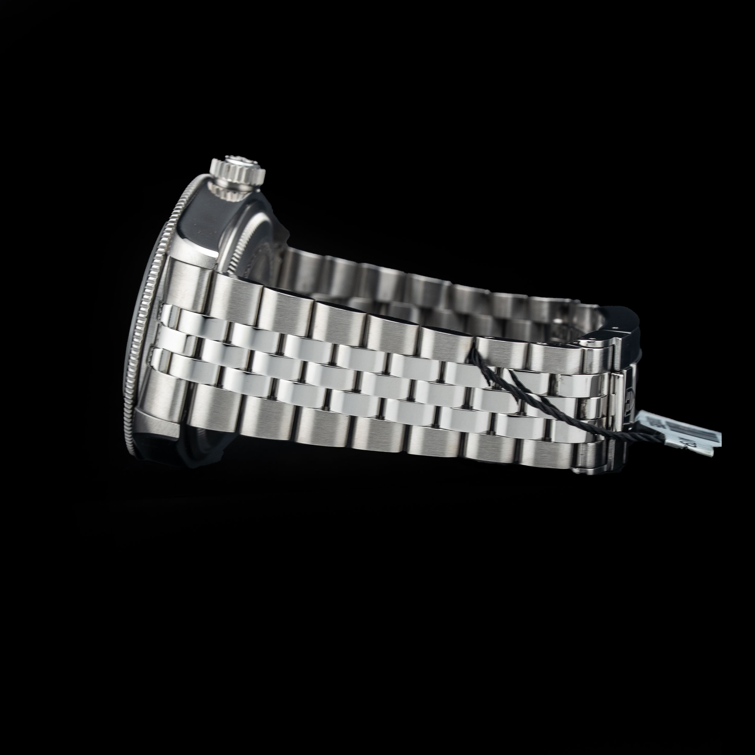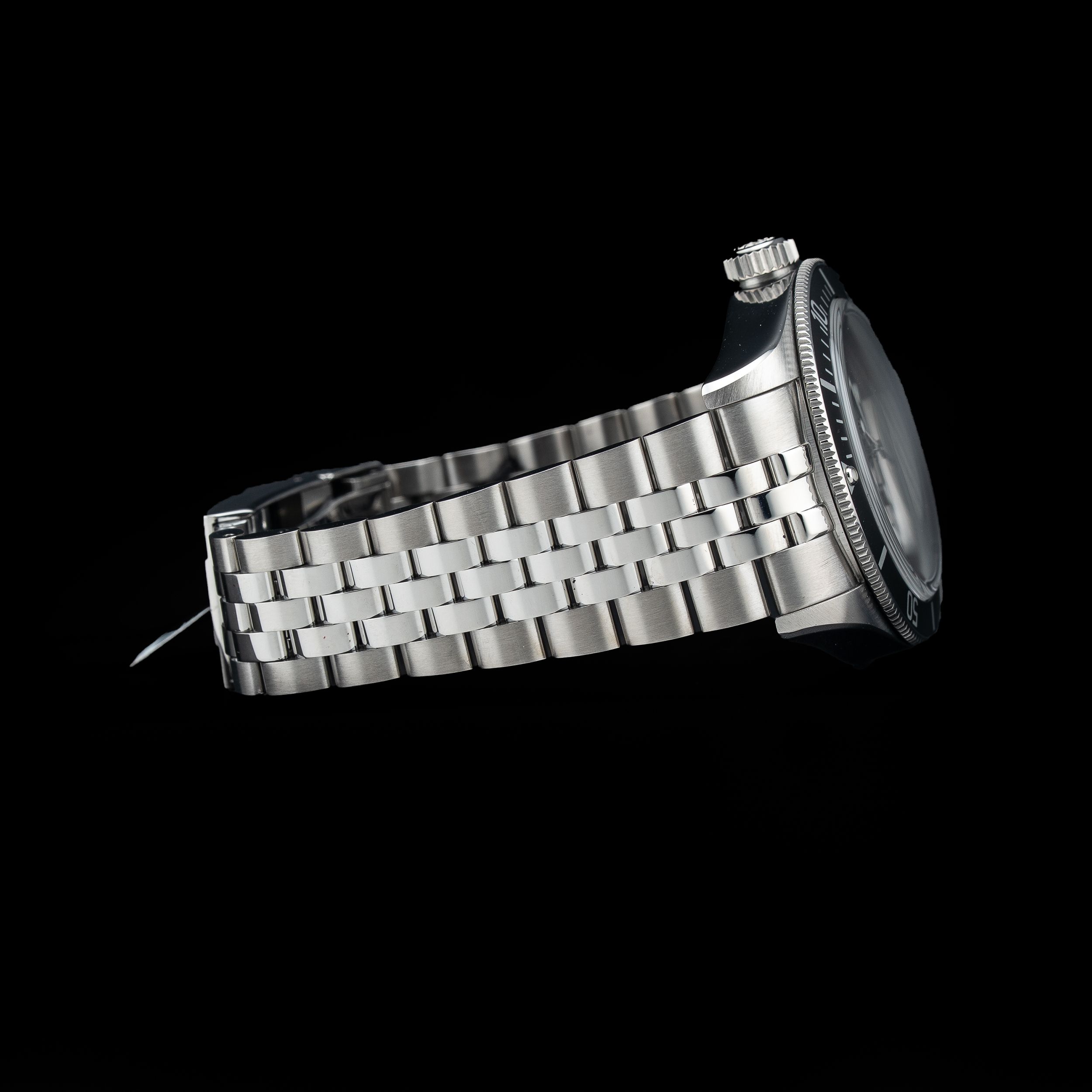 This watch features a 41mm steel case on steel bracelet. This watch also sports a black dial. Powered by a self-winding movement. Water resistance up to 200 meters.