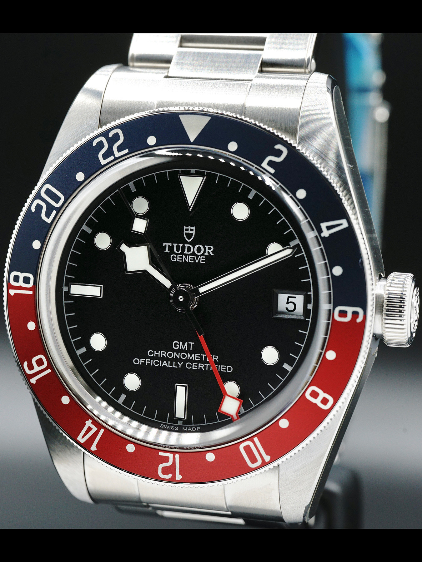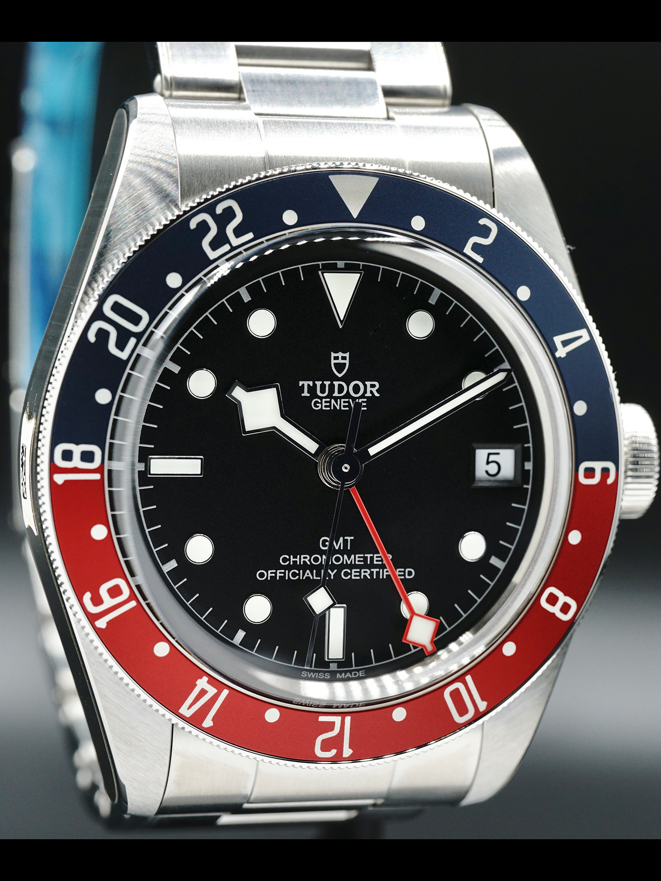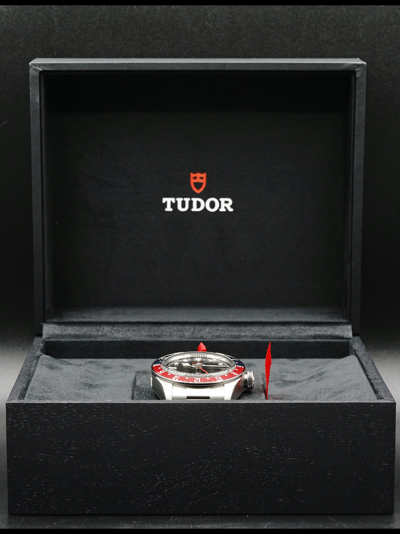 This Tudor Black Bay GMT 79830RB is in EXCELLENT condition. This watch includes its original box, user manual, official chronometer certification, warranty booklet, and international guarantee dated for March 2022. Factory stickers on side case, bracelet, clasp, and buckle.