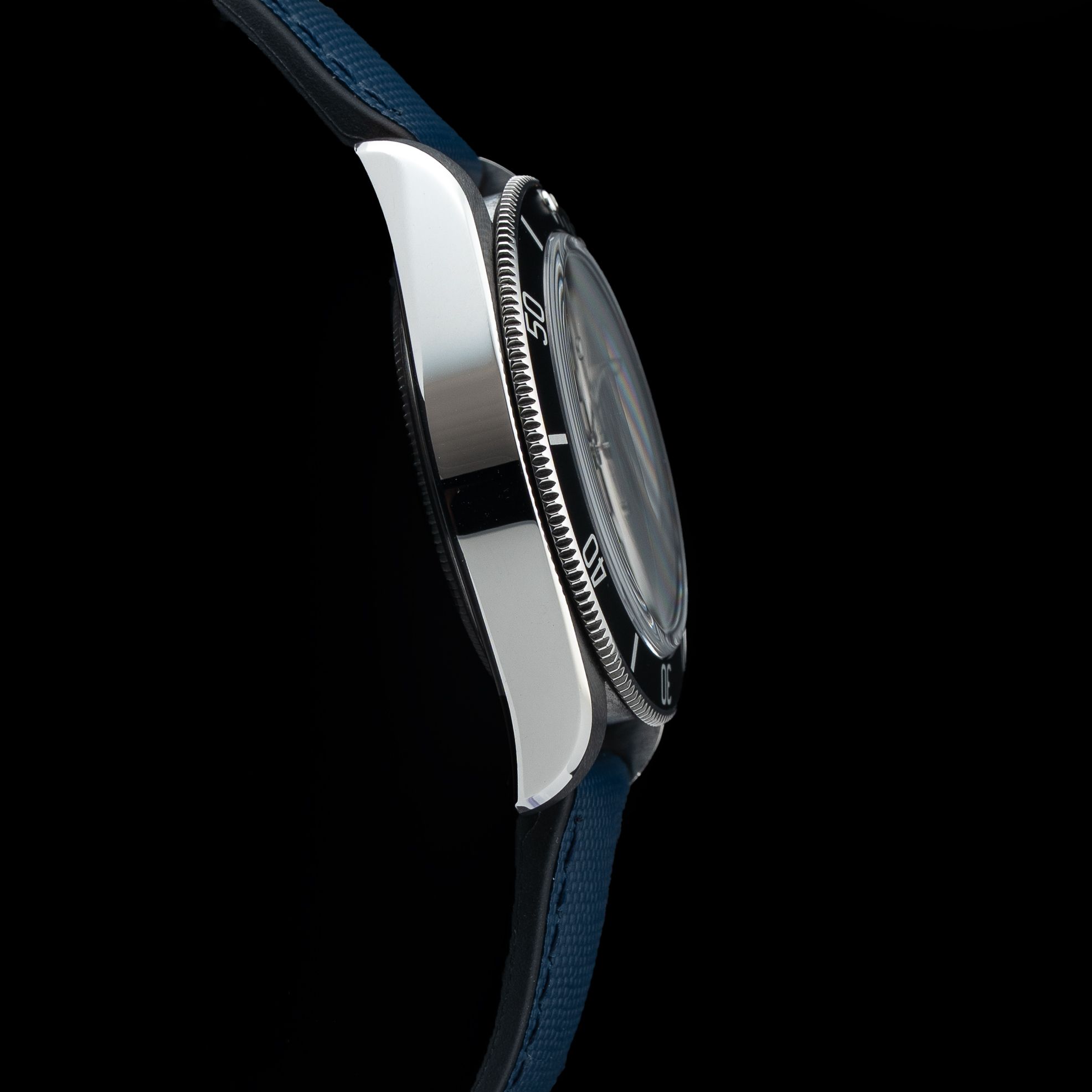 This watch features a 41mm steel case on rubber strap. This watch also sports a black dial. Powered by a self-winding movement. Water resistance up to 200 meters.
