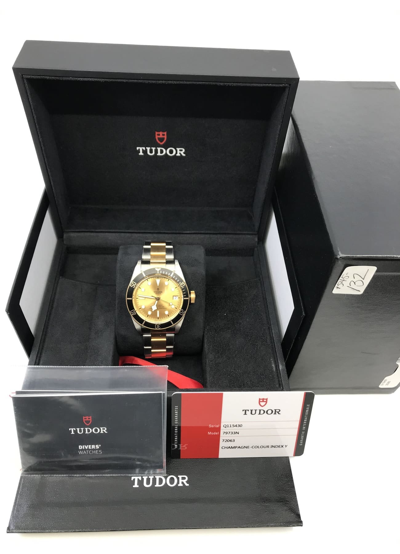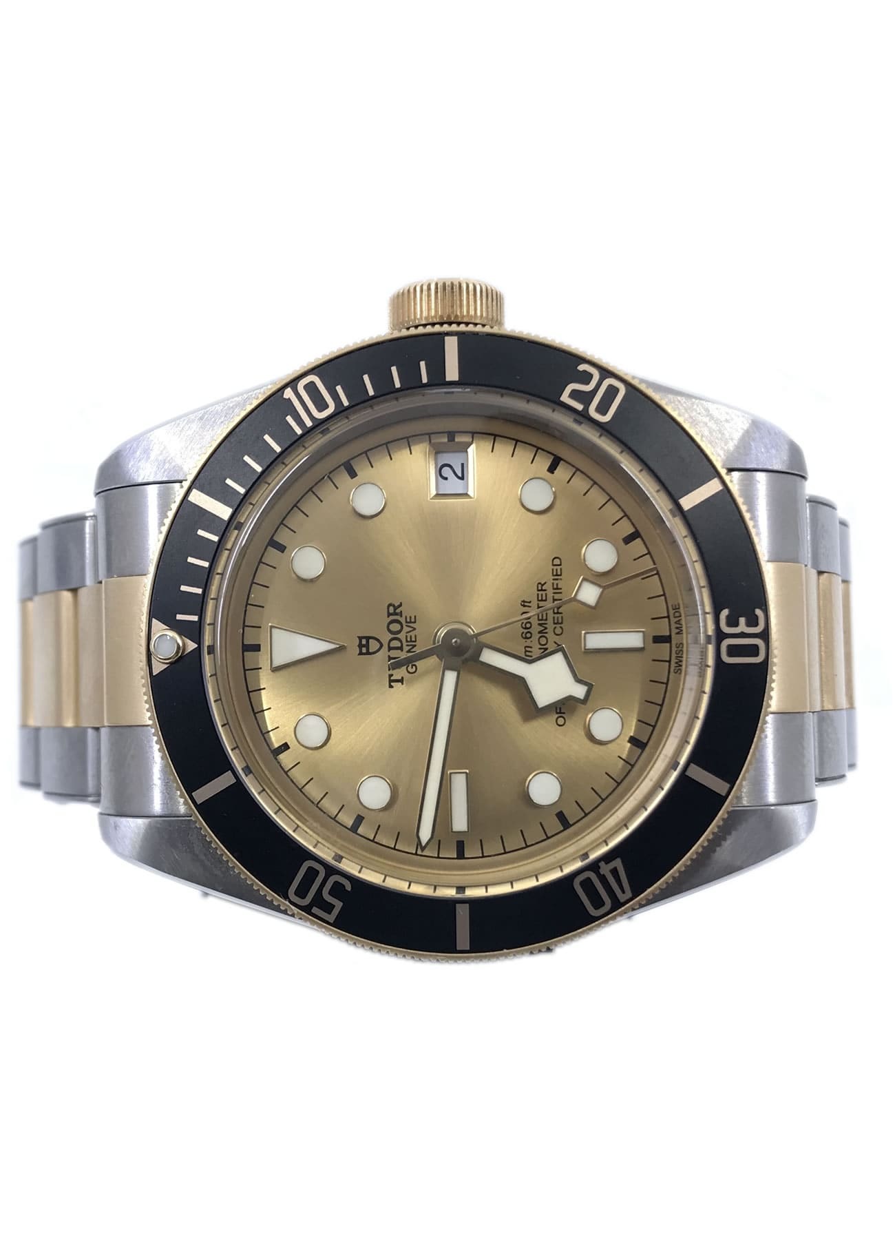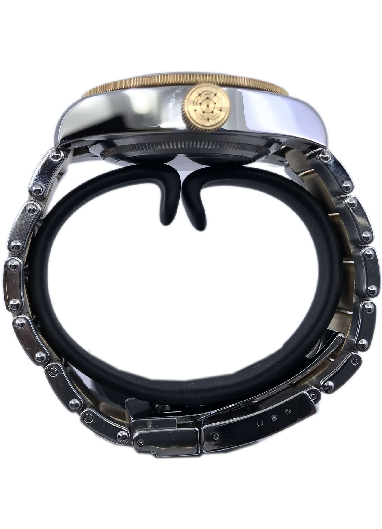 Yellow Gold Screw-down Winding Crown, With The TUDOR Rose Engraved And Lacquered In Black, With Black Anodised Aluminium Winding Crown Tube