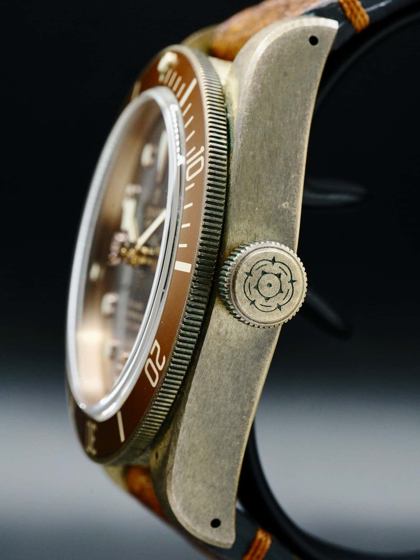 This Tudor Heritage Black Bay Bronze 79250BM features a 43mm bronze case, solid case back on leather strap. This watch also sports a brown dial with luminous hands and luminous indexes, it is covered by scratch resistant sapphire crystal.