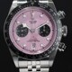 This watch features a 41mm steel case on steel bracelet. This watch also sports a pink dial. Powered by a self-winding movement. Water resistance up to 200 meters.