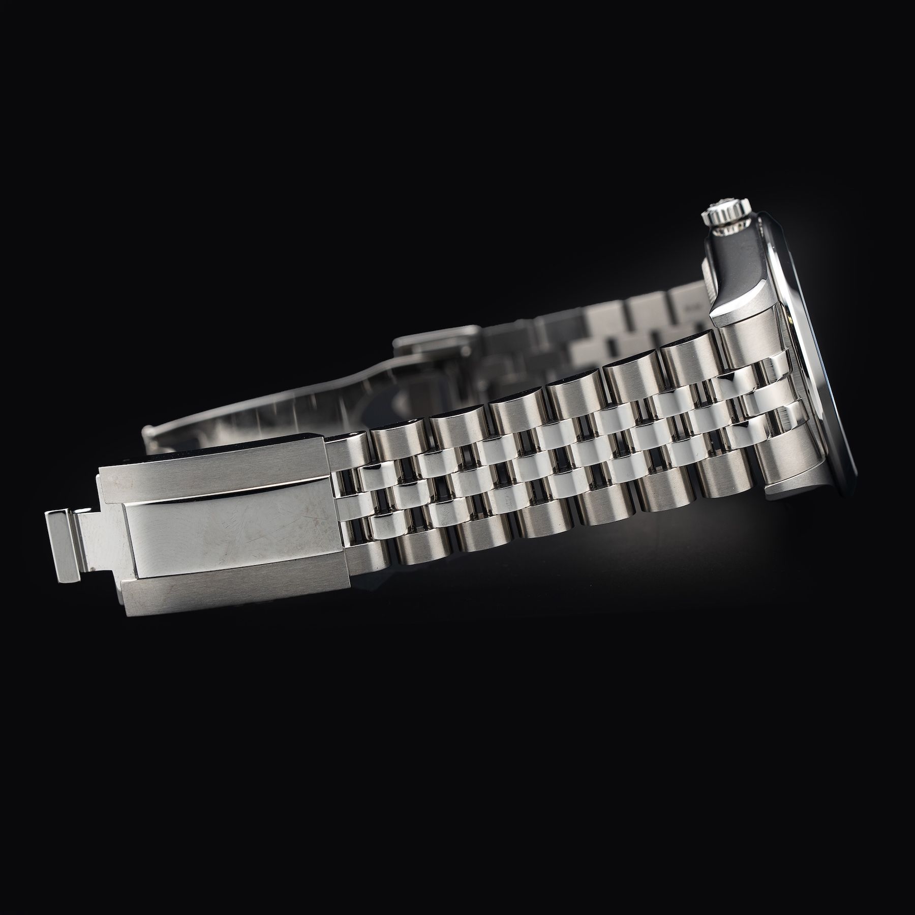 - This timepiece features a 36mm steel case paired with a high quality steel bracelet. It showcases a distinctive black dial and is powered by a precise automatic winding movement. The watch is designed with a water resistance of up to 100m.