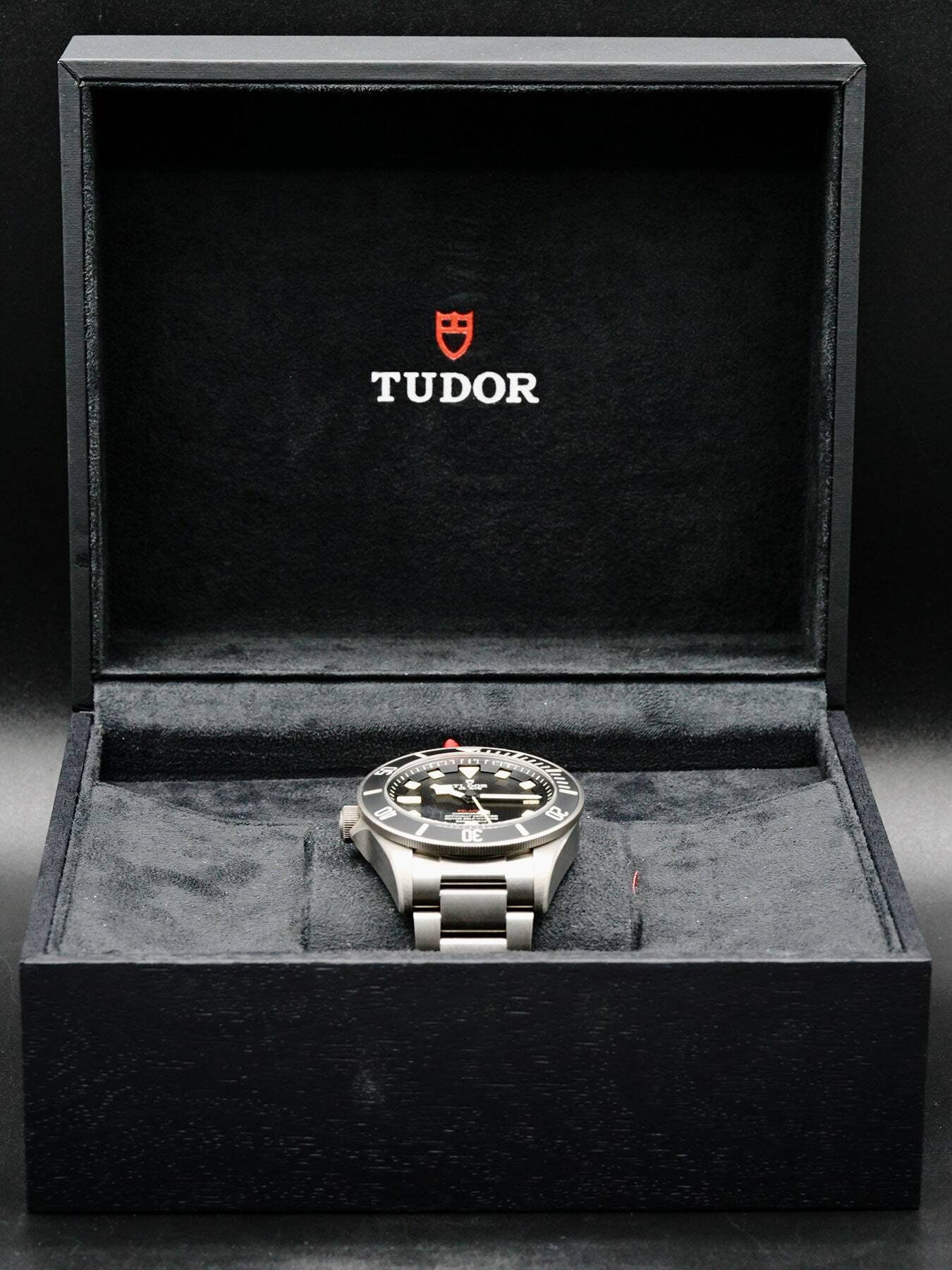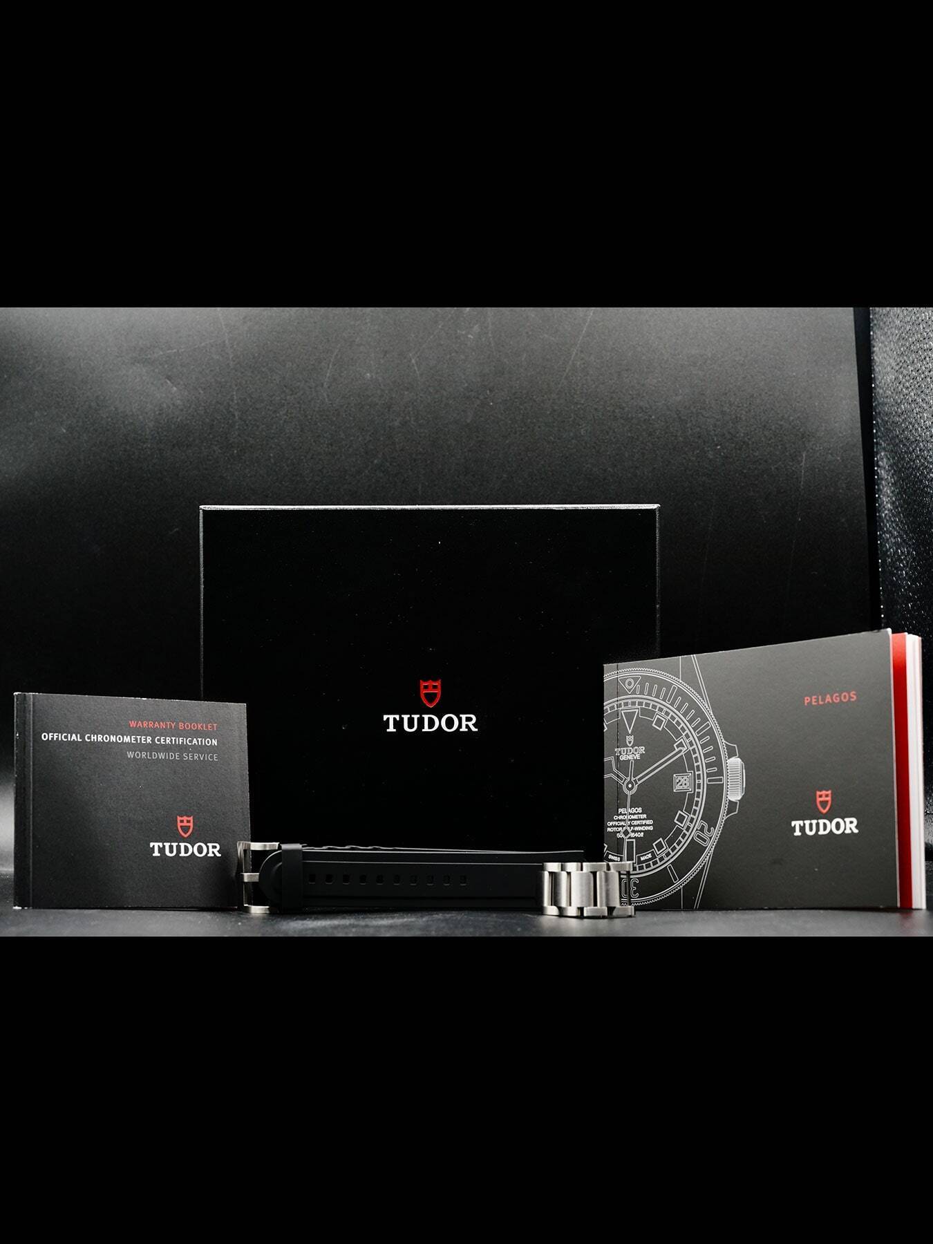 This Tudor Pelagos LHD M25610TNL-0001 is in EXCELLENT condition. This watch includes its original box, user manual, and official chronometer certification. Extra titanium bracelet links and black rubber strap.