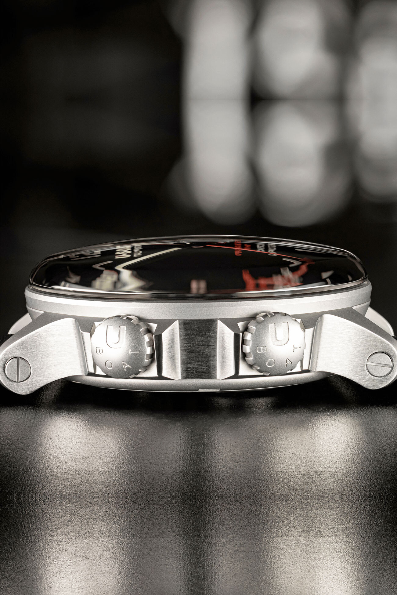 Stainless steel, completely filled with a special oil that emphasizes the dial, creating the illusion of the absence of glass, and an optical effect of a more intense black and higher legibility