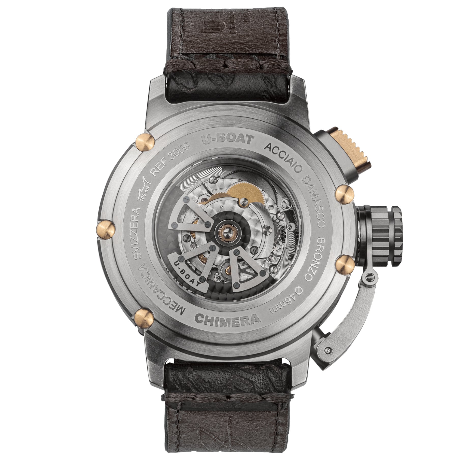 A limited edition timepiece of only 300 pieces, with a distinctive design that never compromises: the Chimera. Bronze merges with Damascus steel in a prestigious model that enhances the lines of a timeless design.