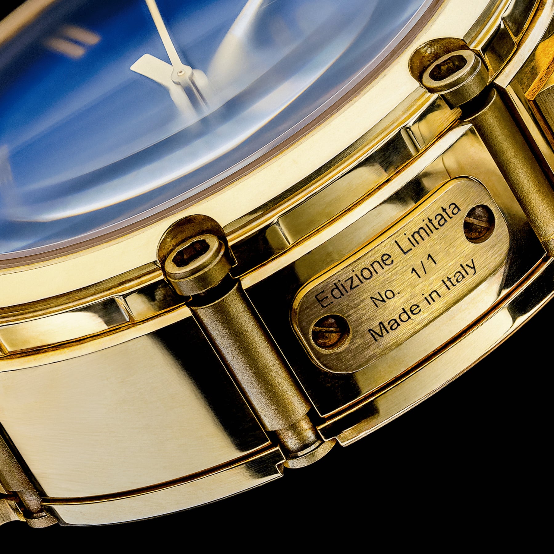 The golden case captures the light with confidence, while the blue metallic dial reveals depth and character.